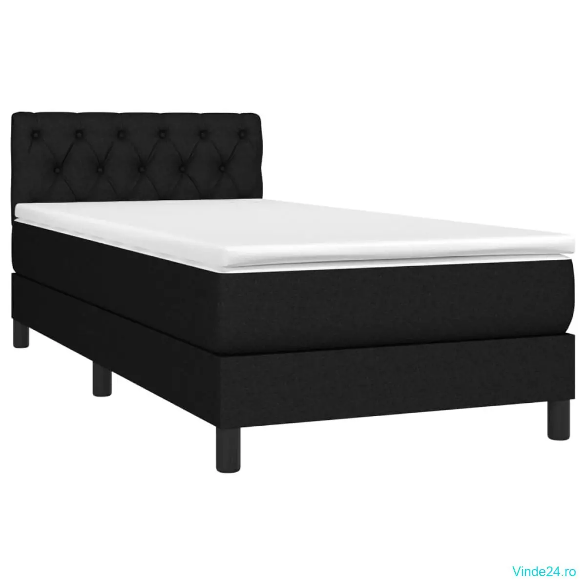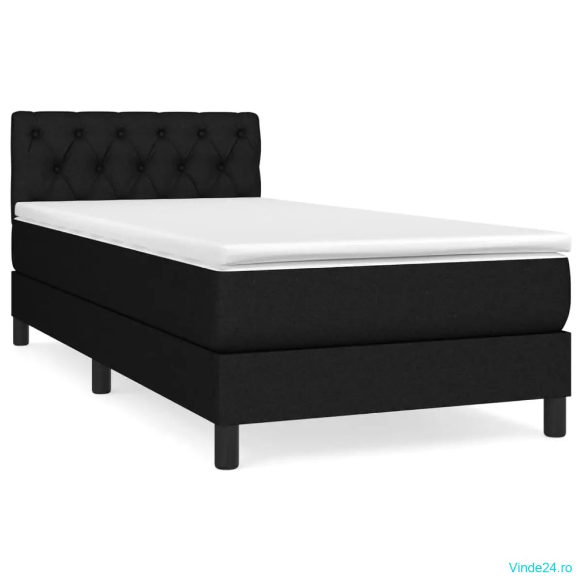 vidaXL Pat box spring cu saltea, negru, 80x200 cm, textil