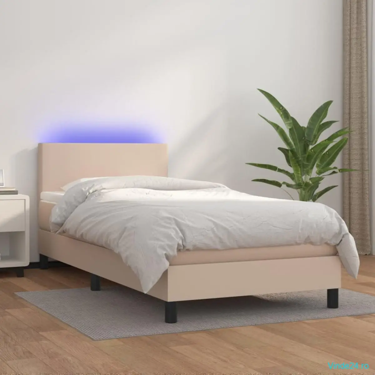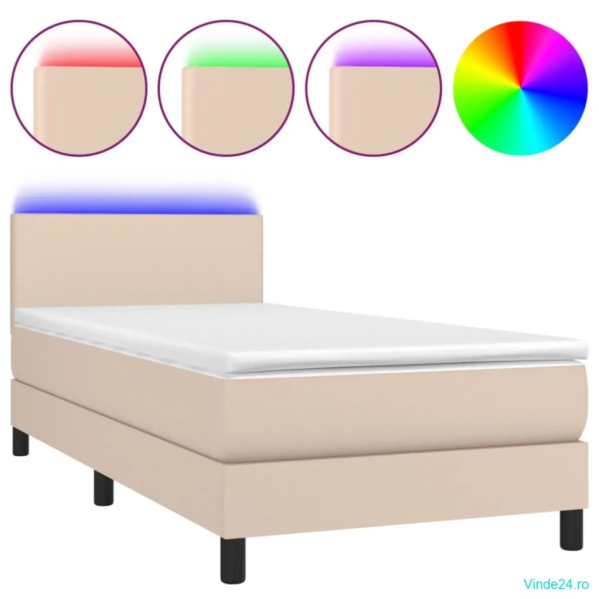 Folosiți acest pat cu arcuri, cu saltea și LED-uri, pentru a vă bucura de un somn odihnitor! Va fi punctul de atracție al dormitorului dvs.