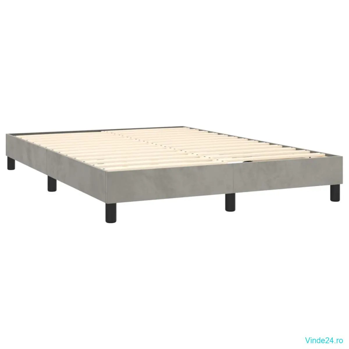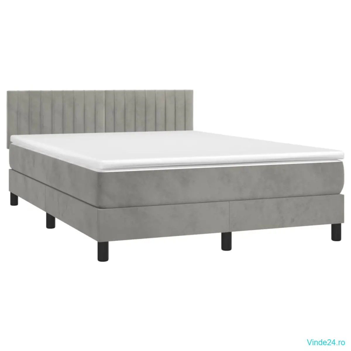 vidaXL Pat continental cu saltea și LED gri deschis 140x190 cm catifea
