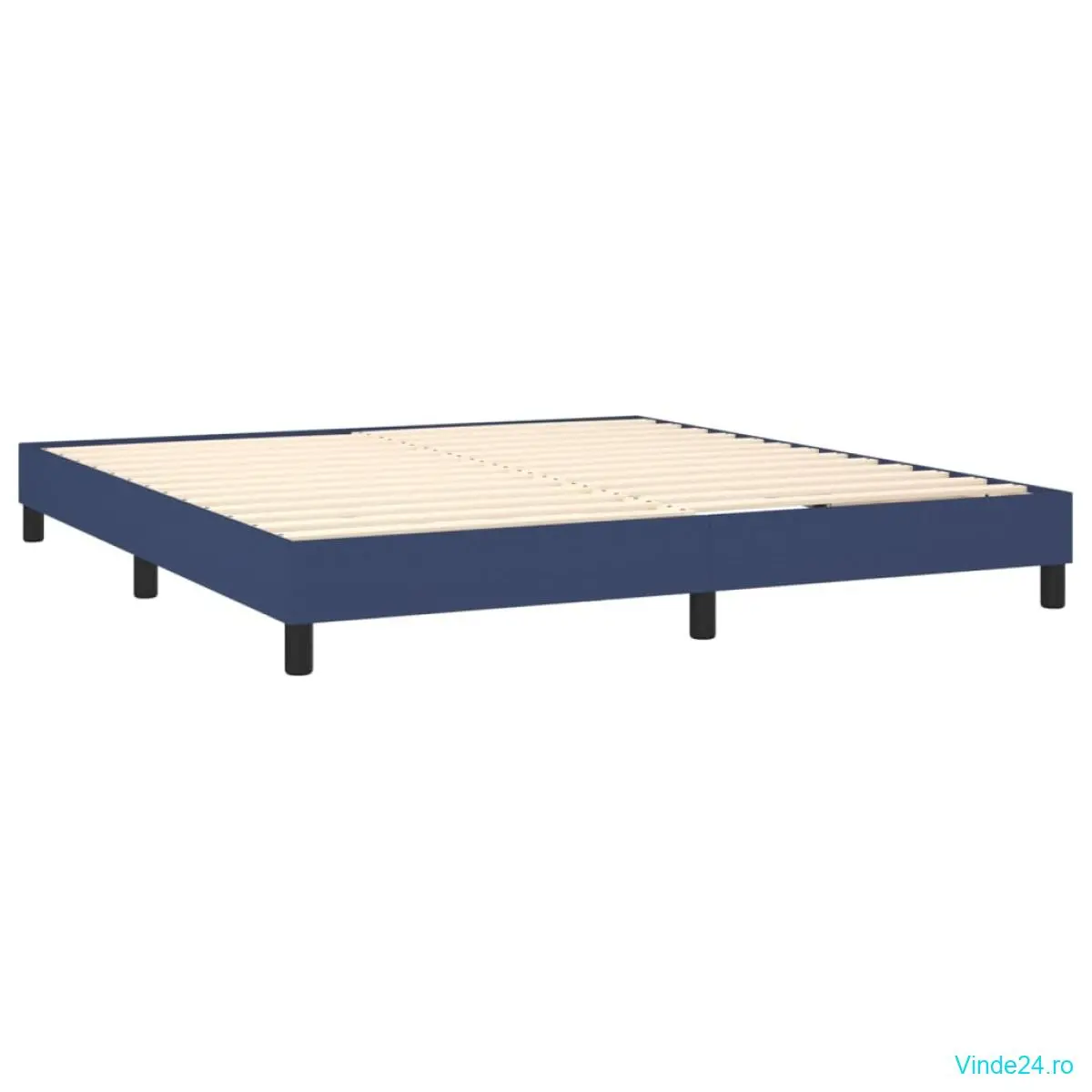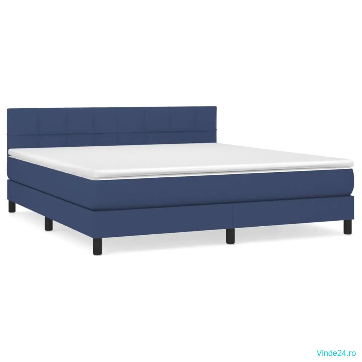 vidaXL Pat continental cu saltea, albastru, 160x200cm, material textil
