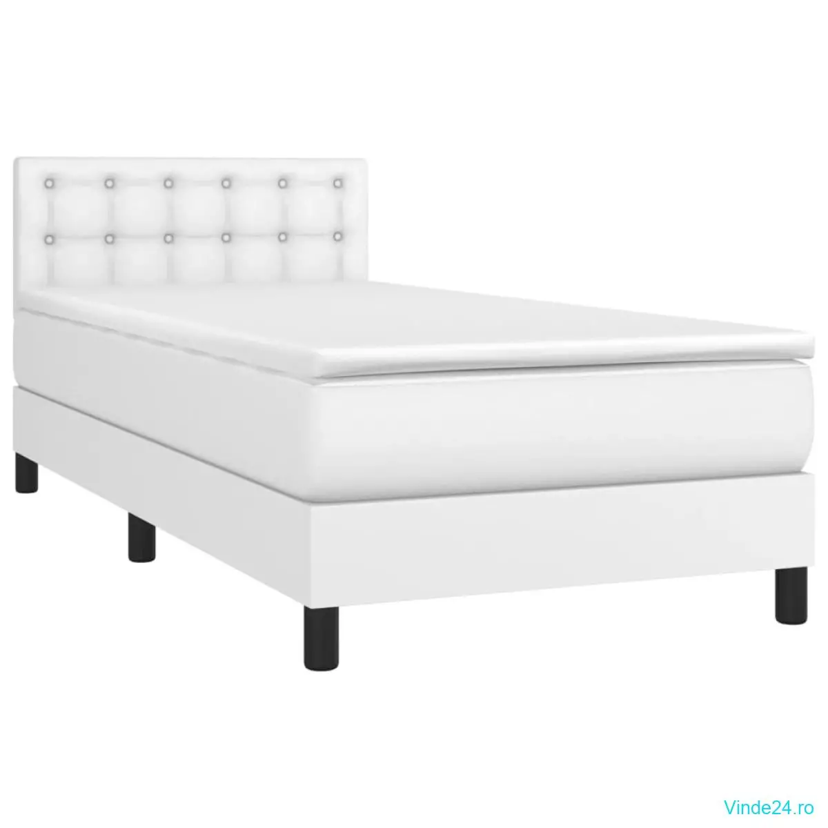 vidaXL Pat continental cu saltea & LED, alb, 90x200 cm, piele eco