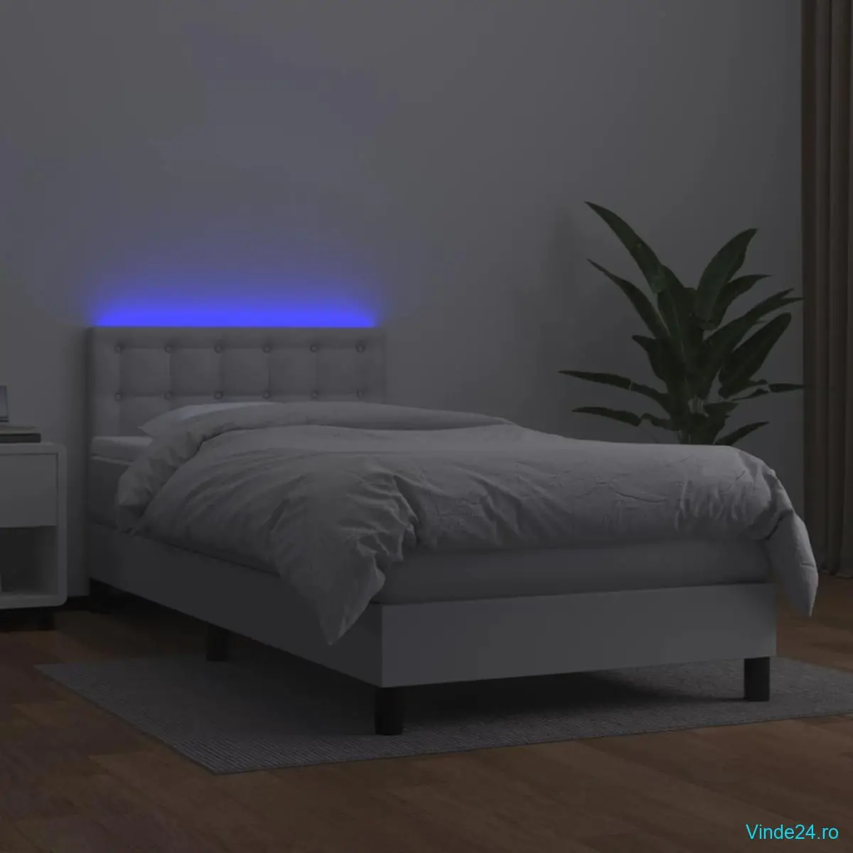 Folosiți acest pat cu arcuri, cu saltea și LED-uri, pentru a vă bucura de un somn odihnitor! Va fi punctul de atracție al dormitorului dvs.
