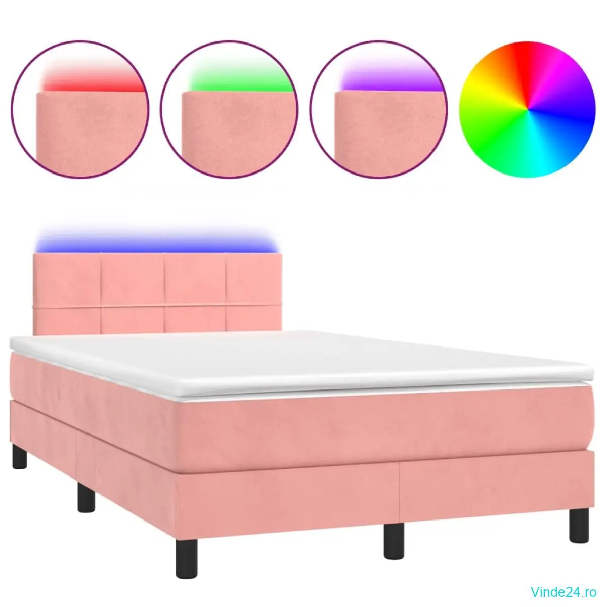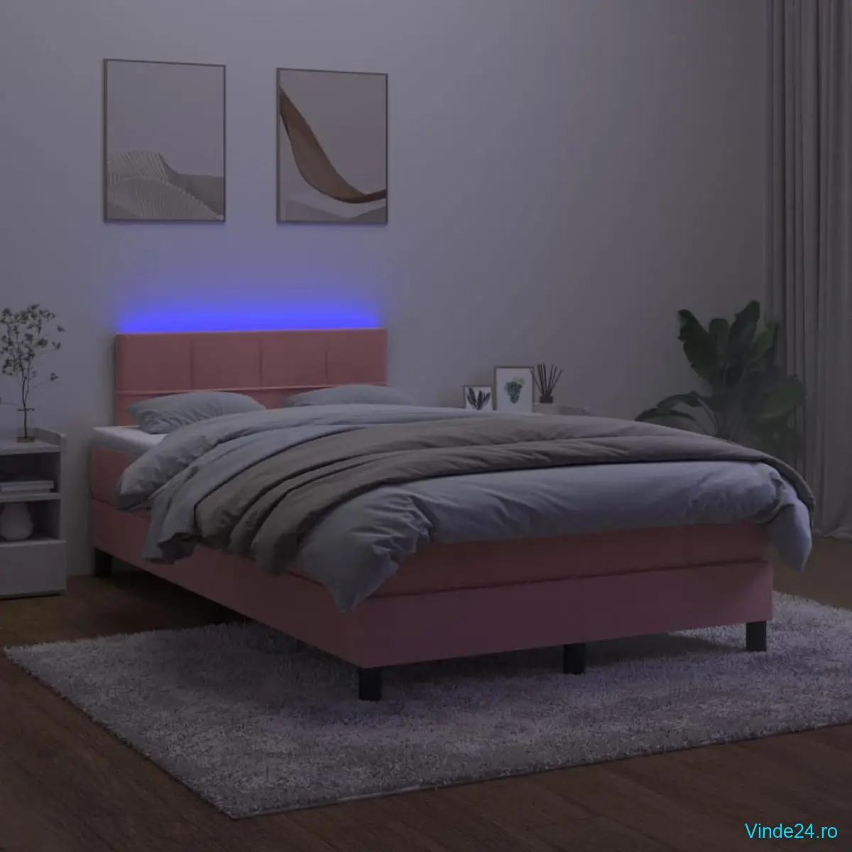 Folosiți acest pat cu arcuri, cu saltea și LED-uri, pentru a vă bucura de un somn odihnitor! Va fi punctul de atracție al dormitorului dvs.