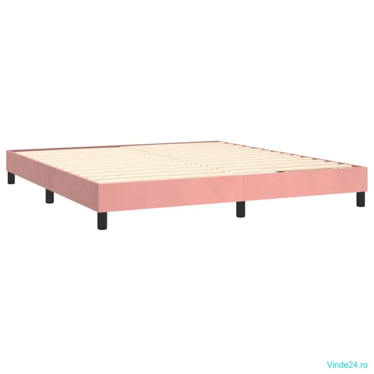 vidaXL Pat continental cu saltea & LED, roz, 120x200 cm, catifea