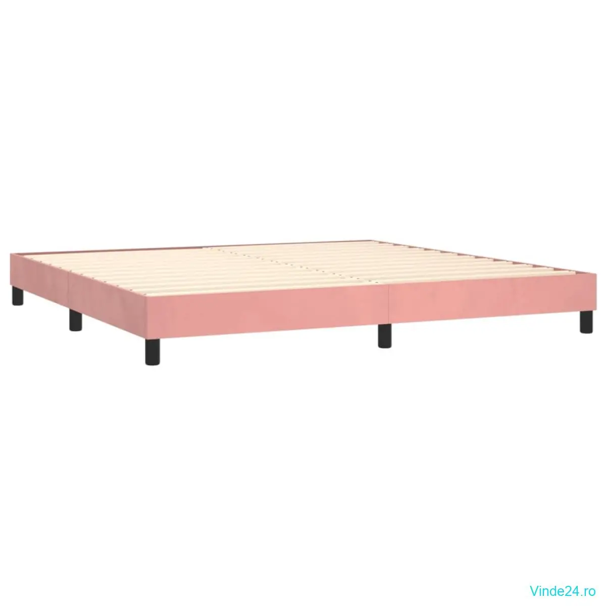 vidaXL Pat continental cu saltea & LED, roz, 200x200 cm, catifea