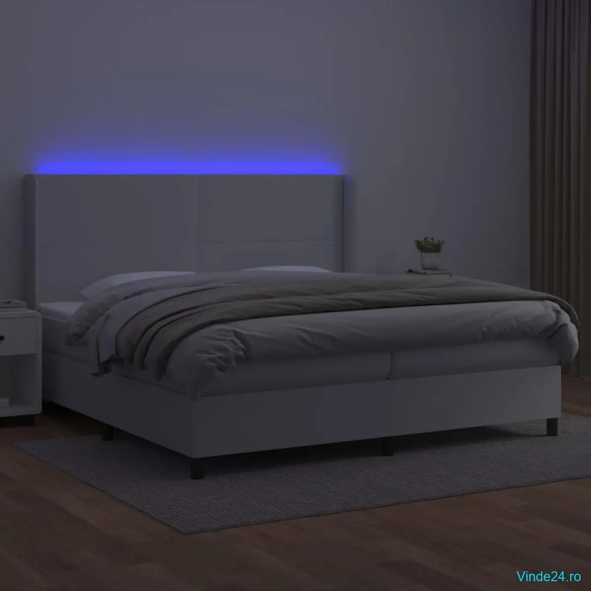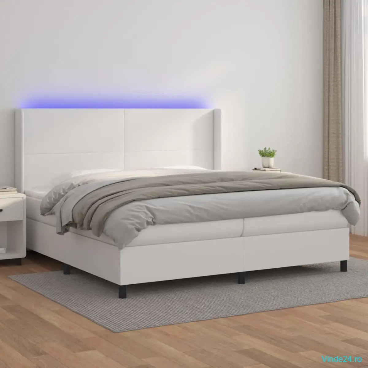Folosiți acest pat cu arcuri, cu saltea și LED-uri, pentru a vă bucura de un somn odihnitor! Va fi punctul de atracție al dormitorului dvs.