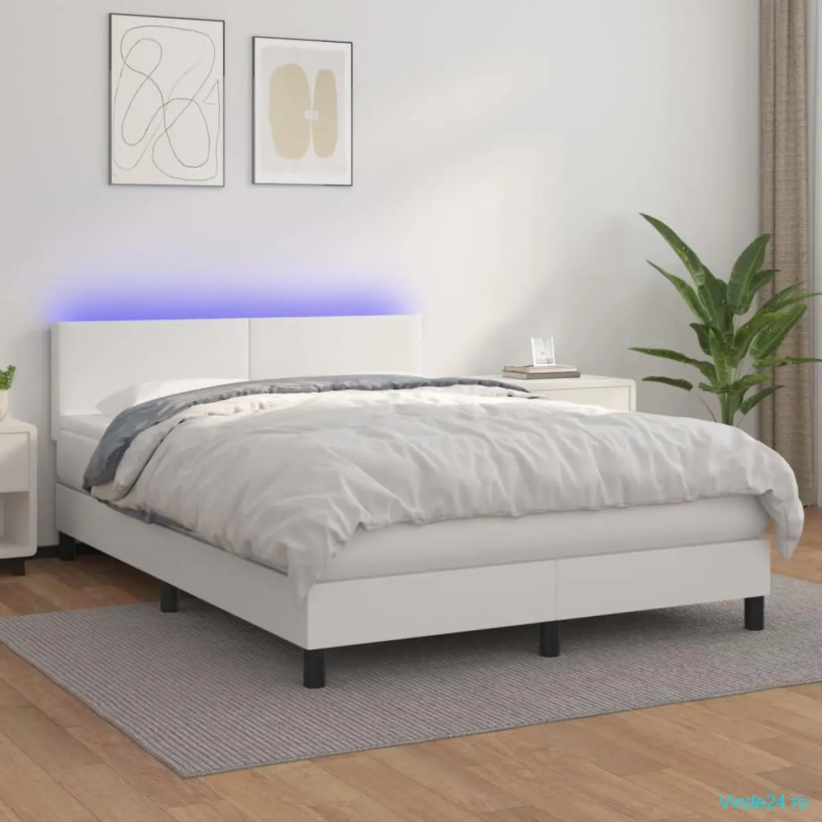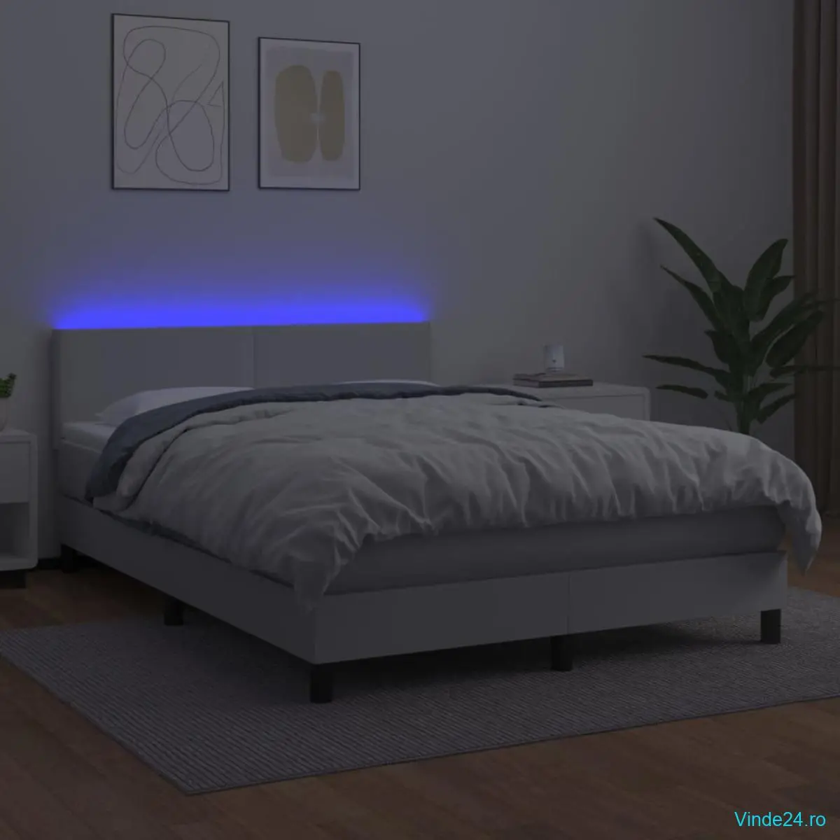 Folosiți acest pat cu arcuri, cu saltea și LED-uri, pentru a vă bucura de un somn odihnitor! Va fi punctul de atracție al dormitorului dvs.