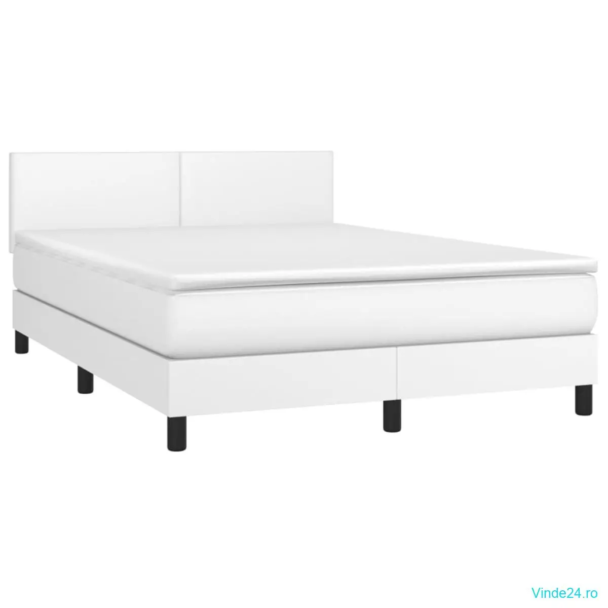 vidaXL Pat cu arcuri, saltea și LED, alb, 140x200 cm, piele eco