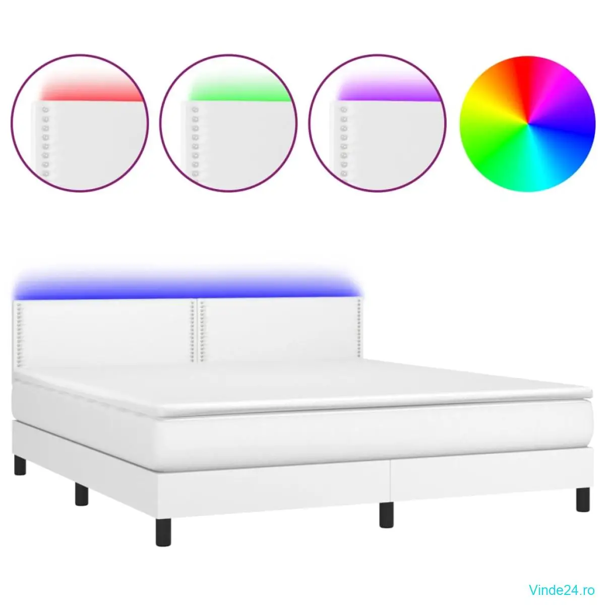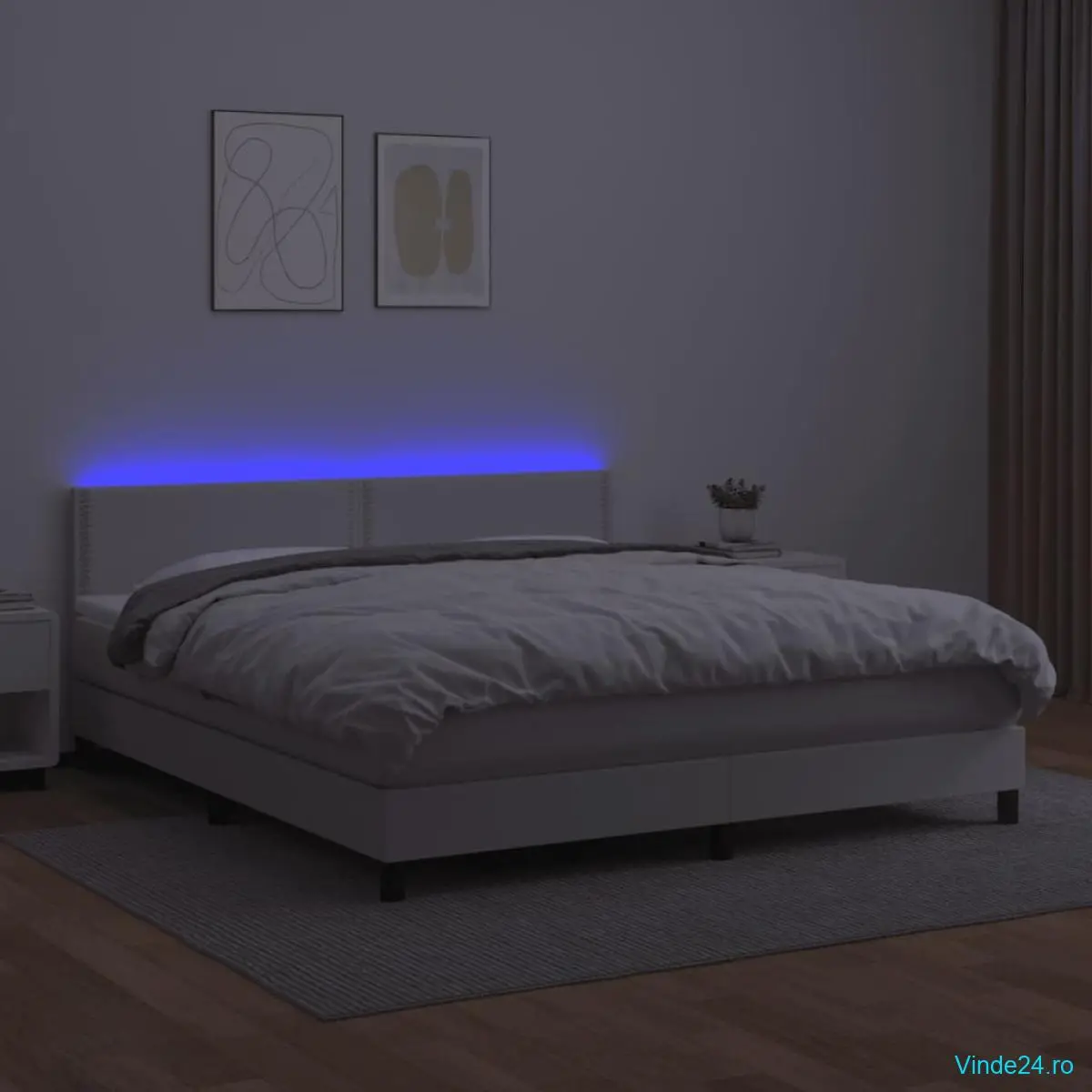 Folosiți acest pat cu arcuri, cu saltea și LED-uri, pentru a vă bucura de un somn odihnitor! Va fi punctul de atracție al dormitorului dvs.