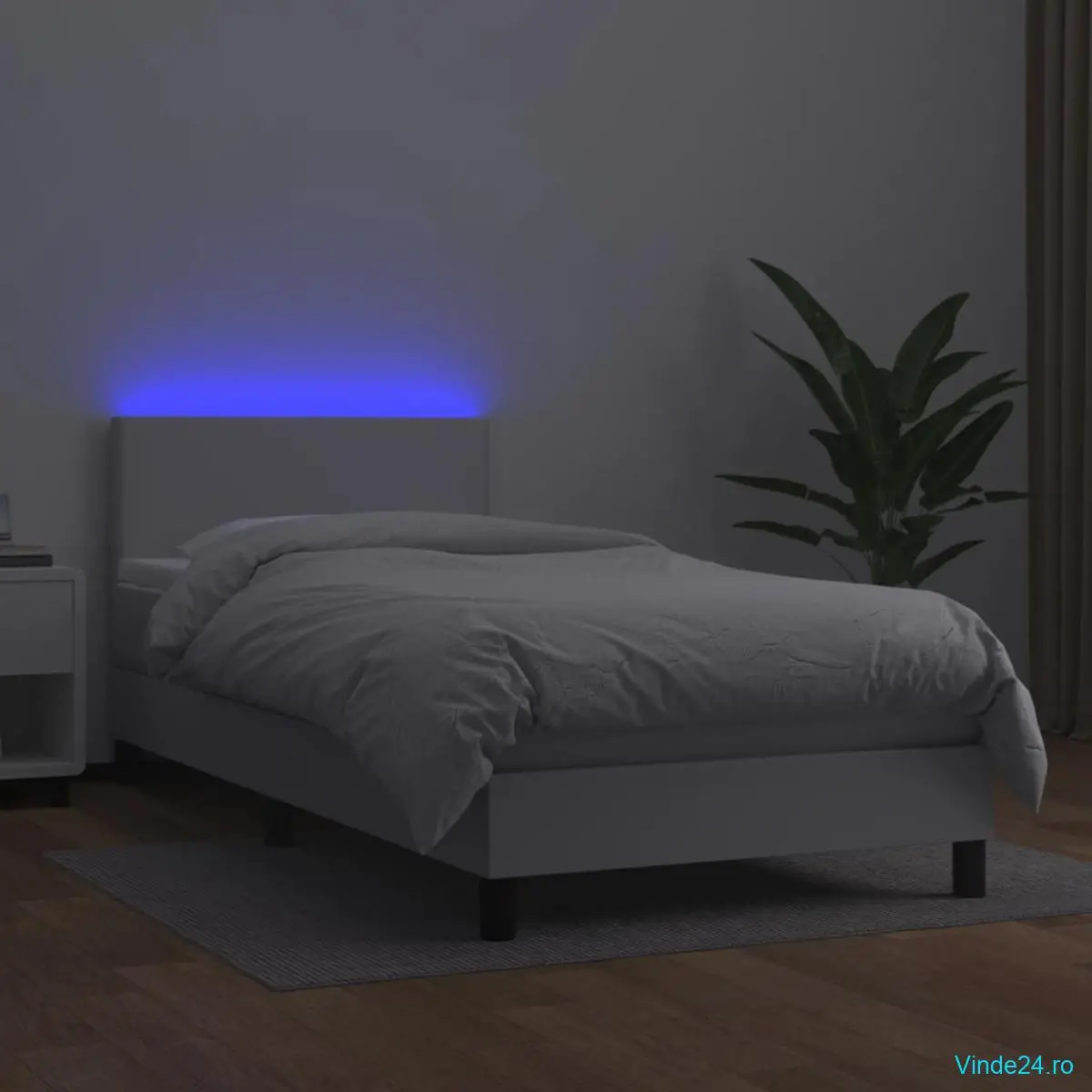 Folosiți acest pat cu arcuri, cu saltea și LED-uri, pentru a vă bucura de un somn odihnitor! Va fi punctul de atracție al dormitorului dvs.