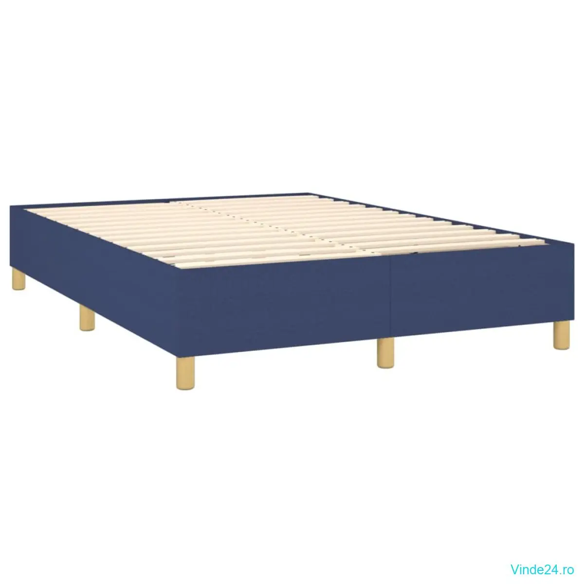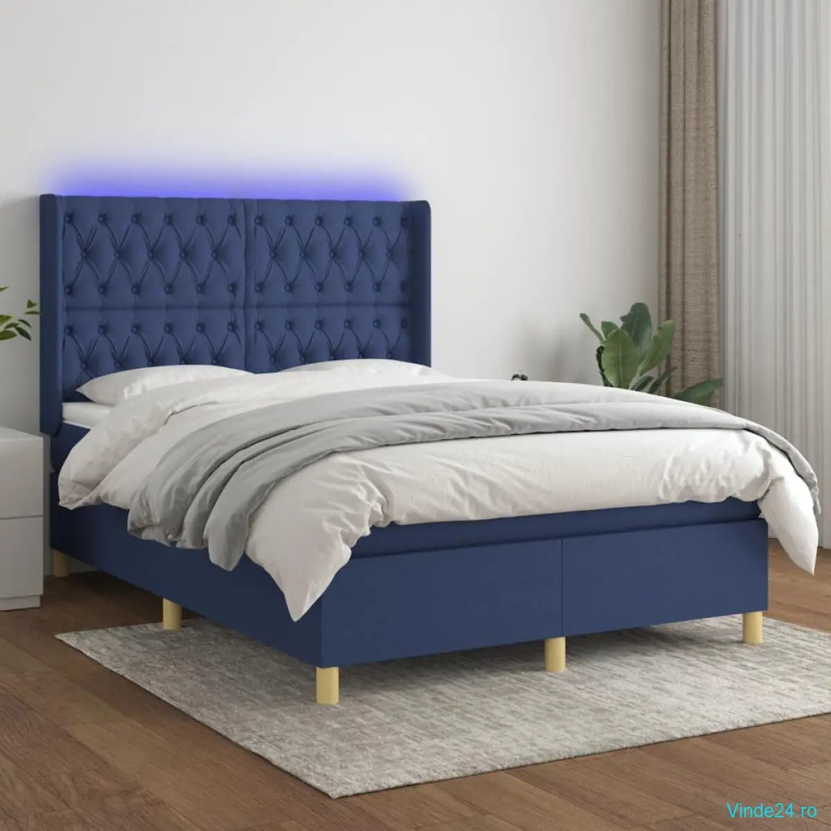 vidaXL Pat cu arcuri, saltea și LED, albastru, 140x200 cm, textil