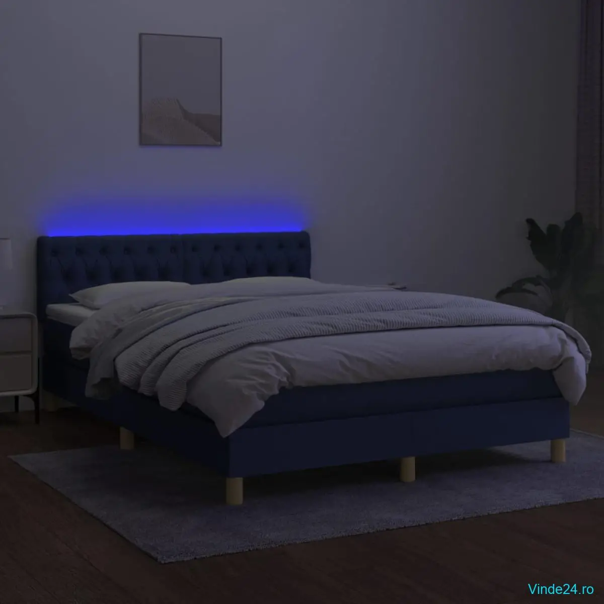 Folosiți acest pat cu arcuri, cu saltea și LED-uri, pentru a vă bucura de un somn odihnitor! Va fi punctul de atracție al dormitorului dvs.