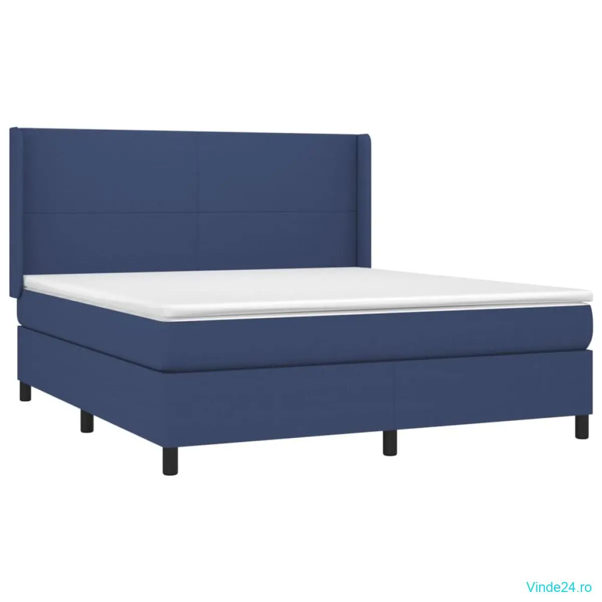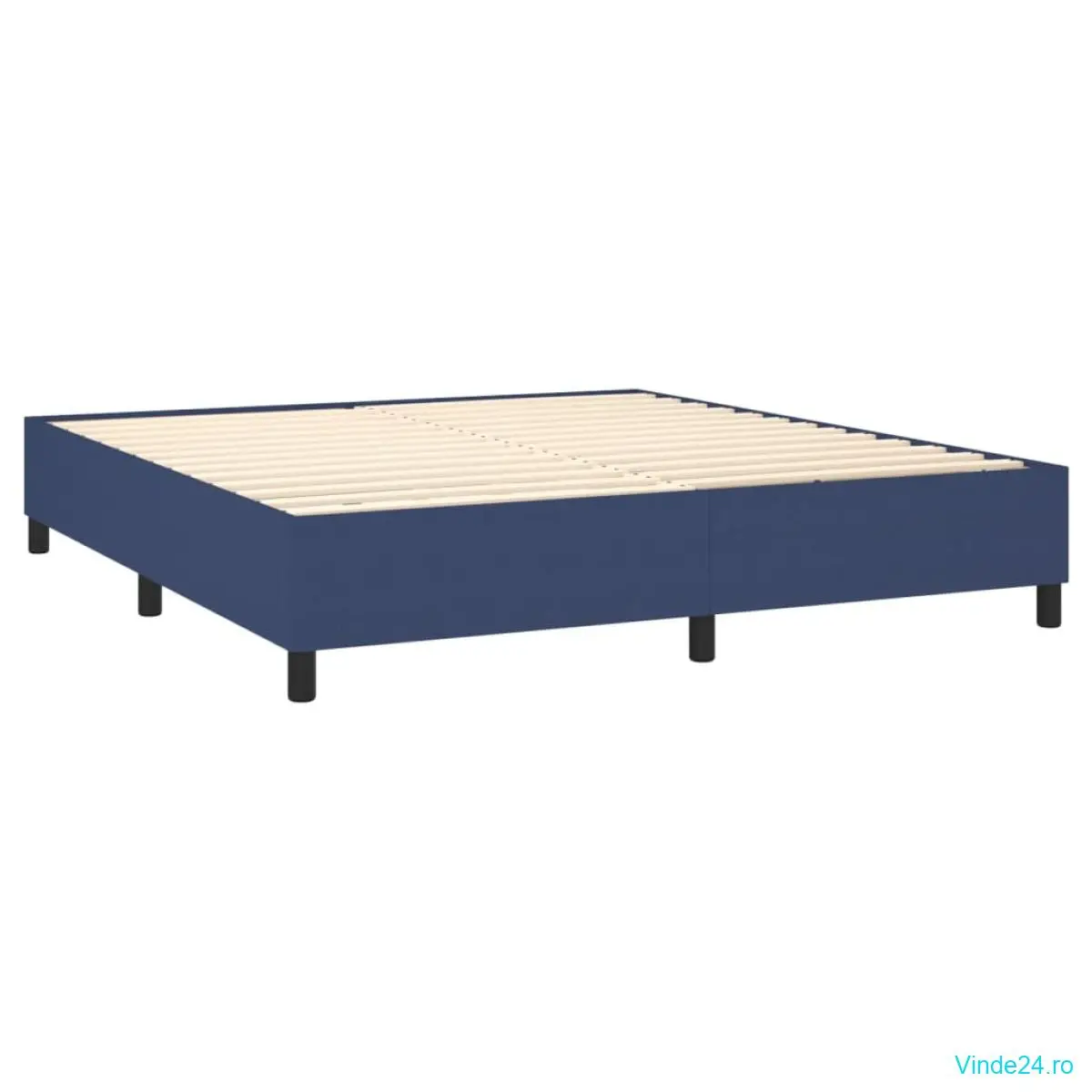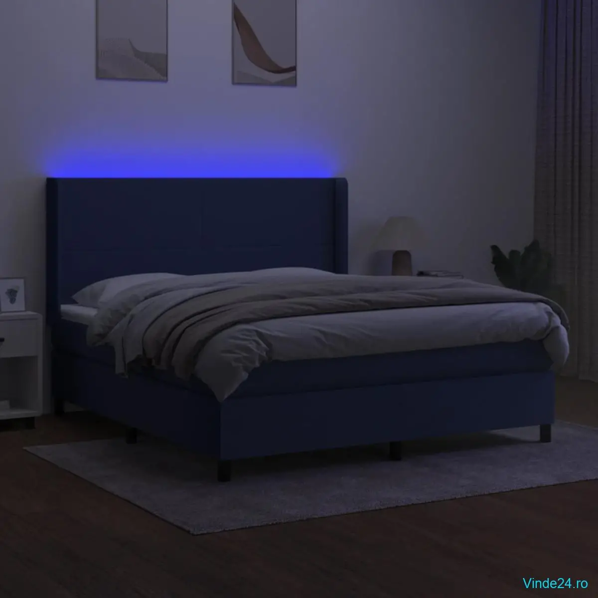 vidaXL Pat cu arcuri, saltea și LED, albastru, 160x200 cm, textil