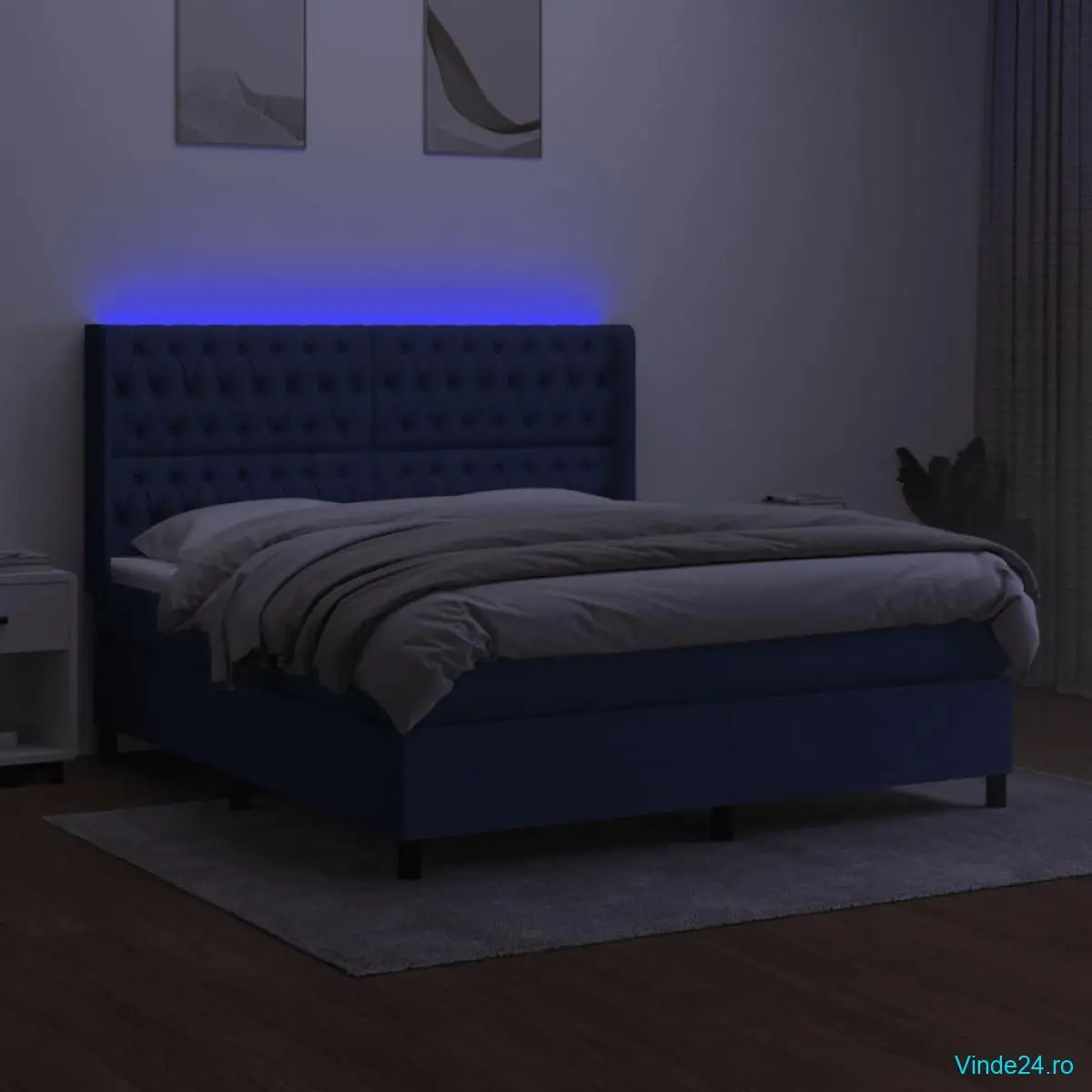 Folosiți acest pat cu arcuri, cu saltea și LED-uri, pentru a vă bucura de un somn odihnitor! Va fi punctul de atracție al dormitorului dvs.