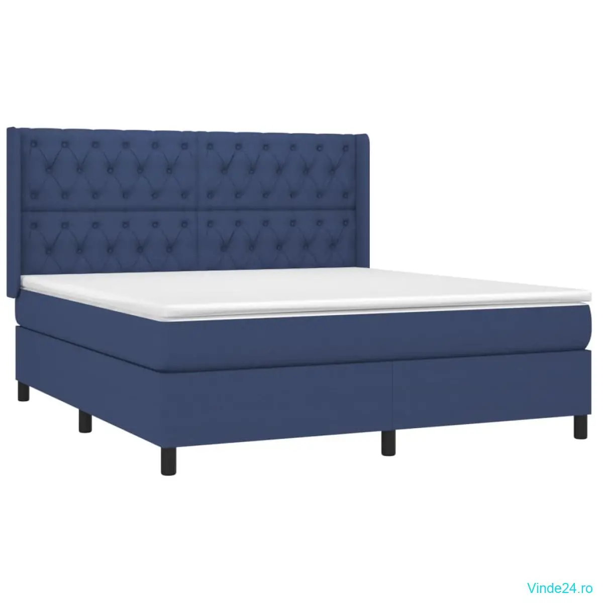 vidaXL Pat cu arcuri, saltea și LED, albastru, 160x200 cm, textil