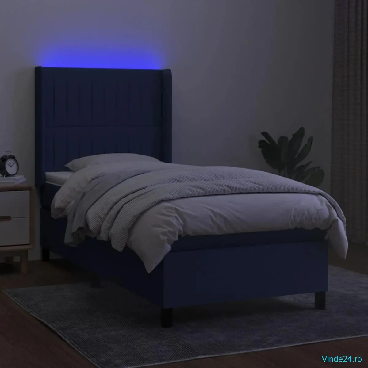 Folosiți acest pat cu arcuri, cu saltea și LED-uri, pentru a vă bucura de un somn odihnitor! Va fi punctul de atracție al dormitorului dvs.