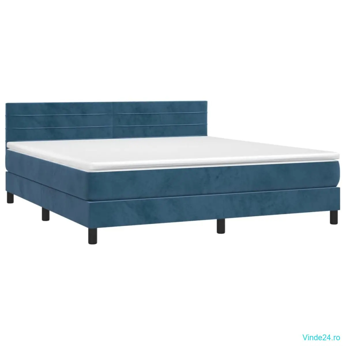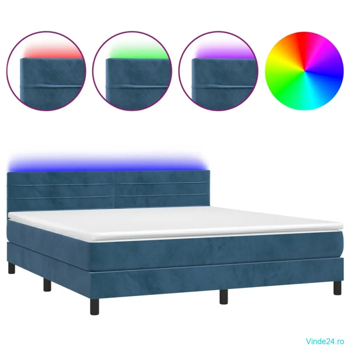 vidaXL Pat cu arcuri, saltea și LED, bleumarin, 180x200 cm, catifea