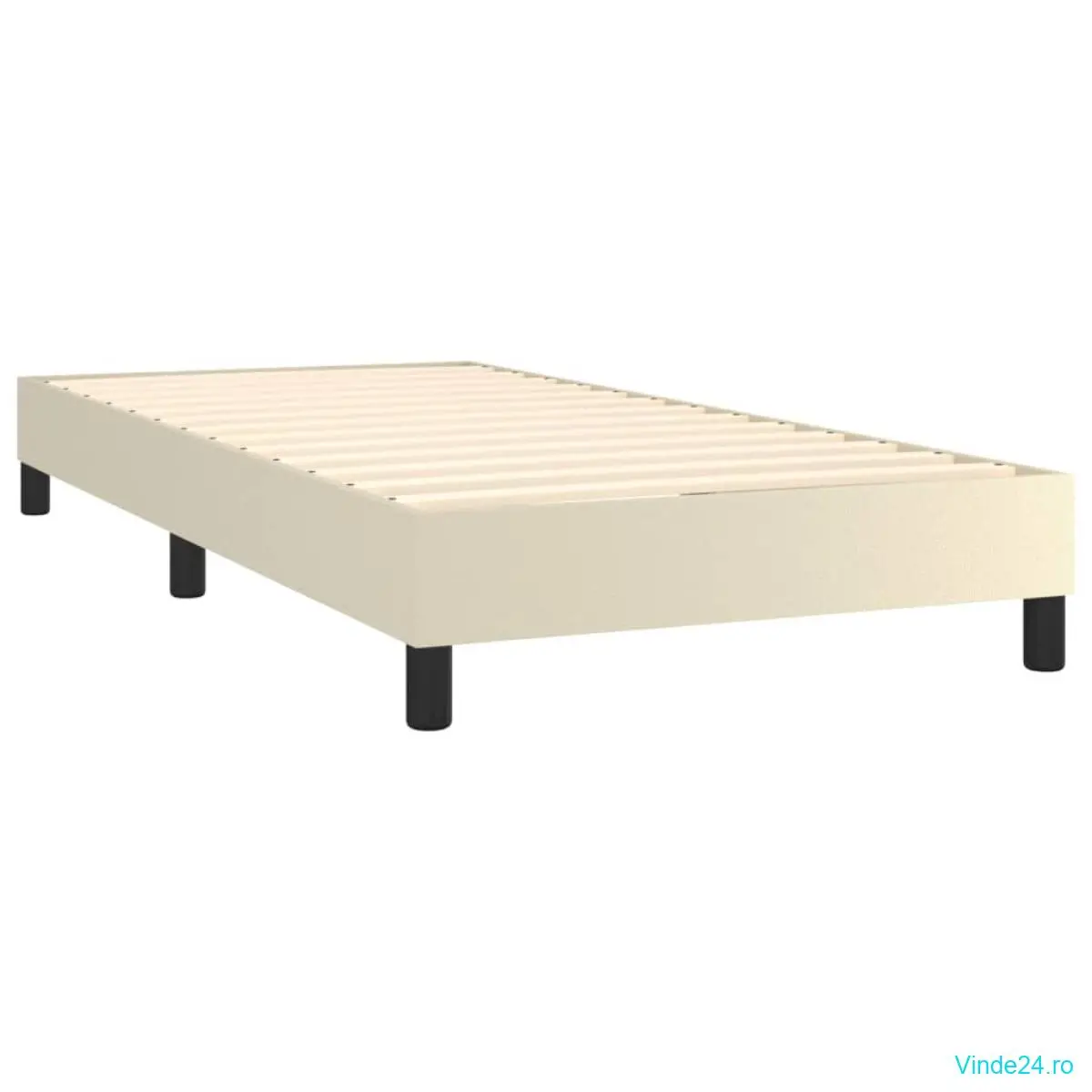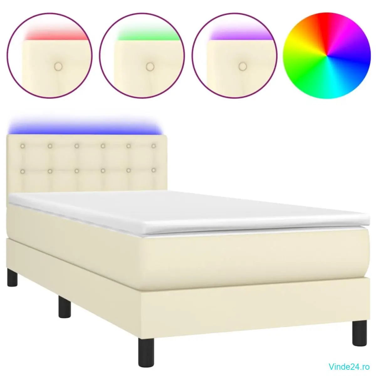 vidaXL Pat cu arcuri, saltea și LED, crem, 100x200 cm, piele ecologică