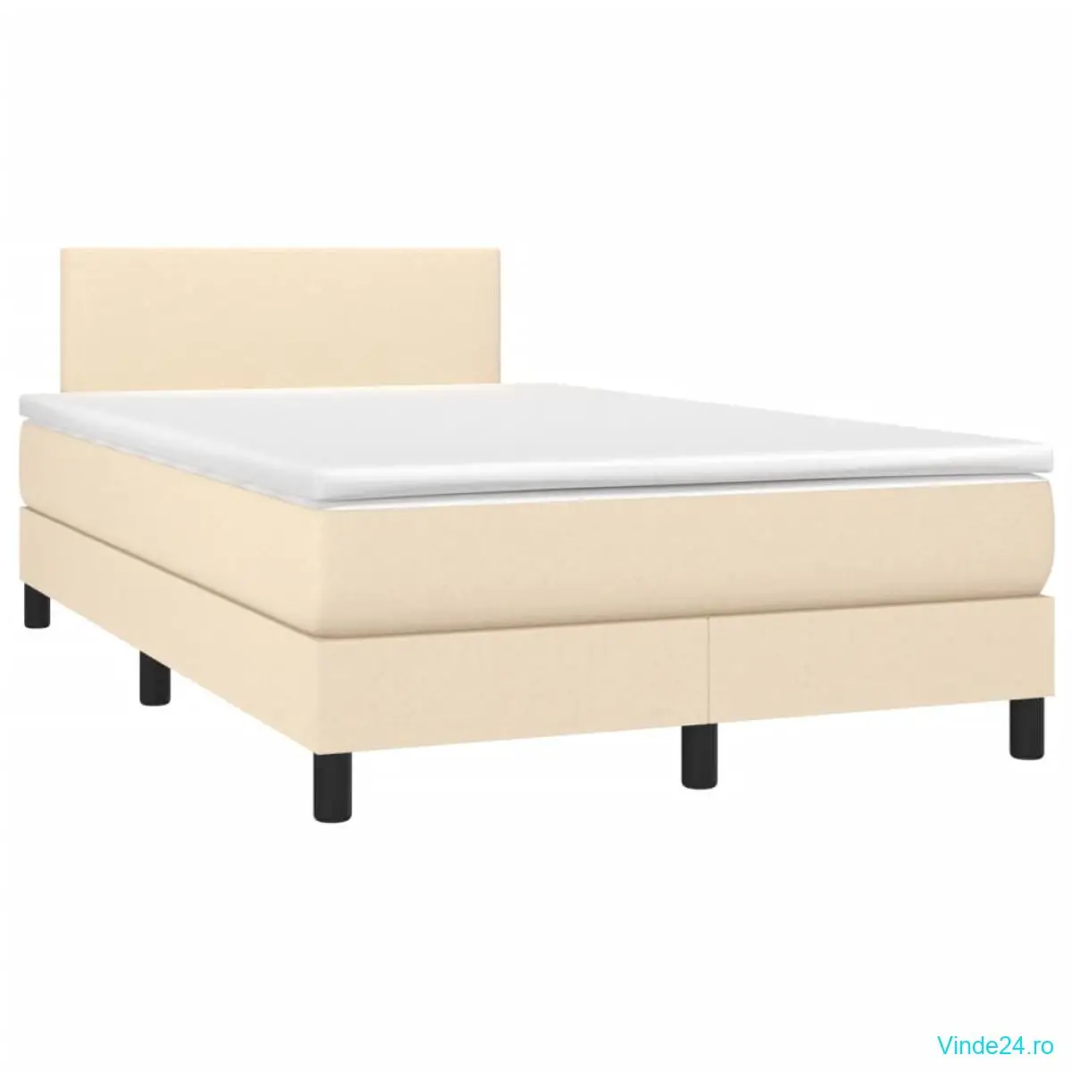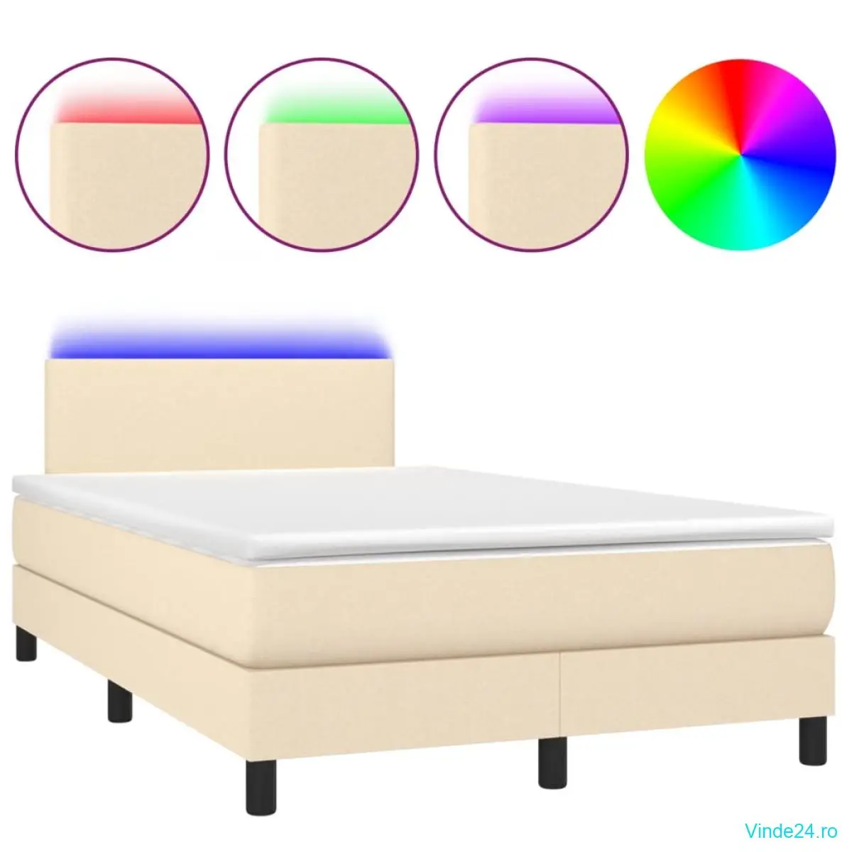 vidaXL Pat cu arcuri, saltea și LED, crem, 120x200 cm, textil