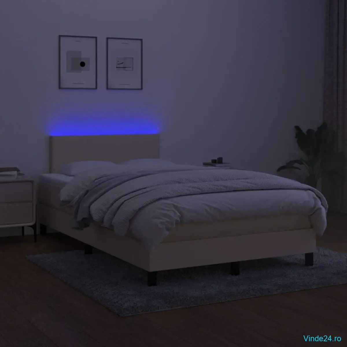 Folosiți acest pat cu arcuri, cu saltea și LED-uri, pentru a vă bucura de un somn odihnitor! Va fi punctul de atracție al dormitorului dvs.