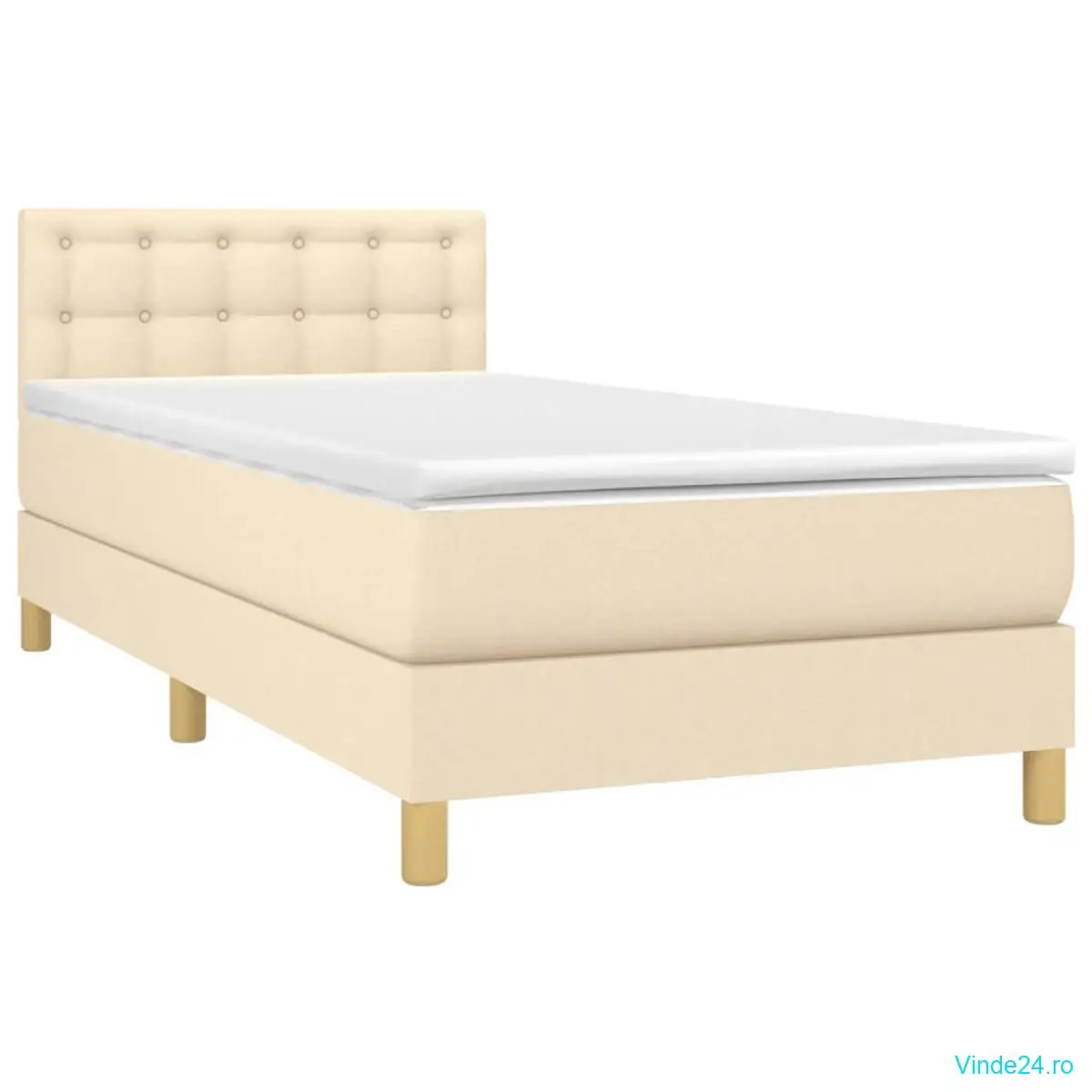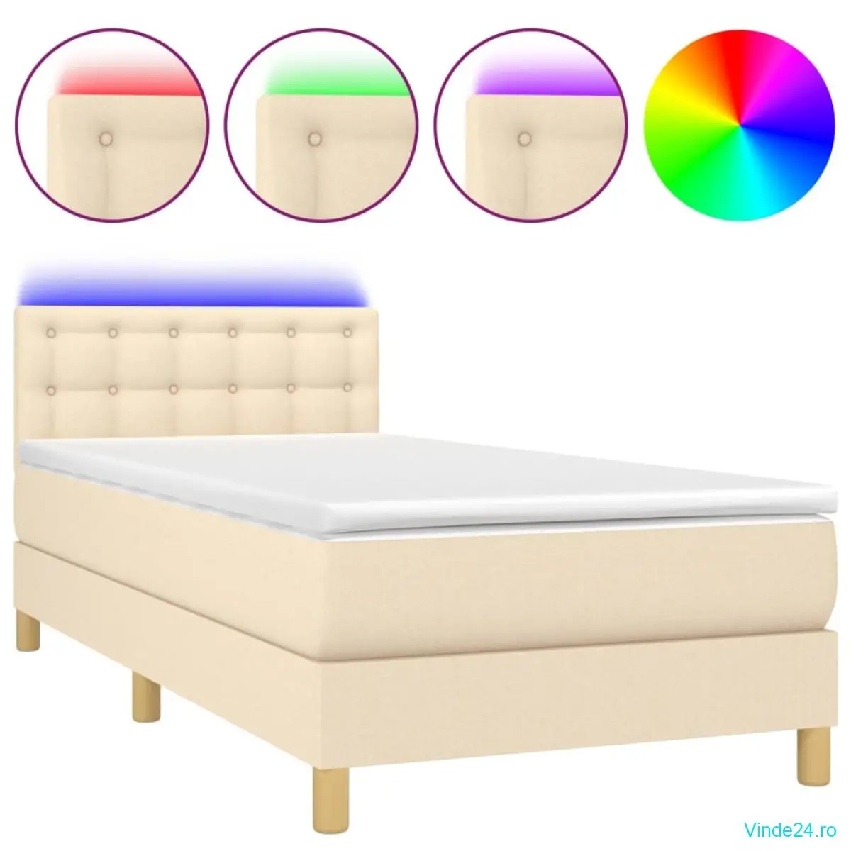 vidaXL Pat cu arcuri, saltea și LED, crem, 80x200 cm, textil