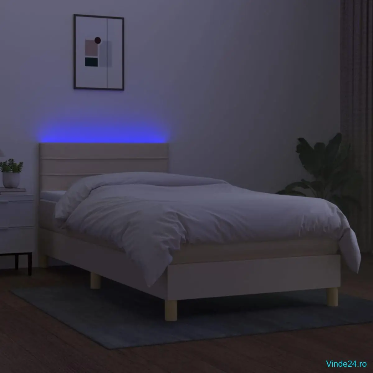 Folosiți acest pat cu arcuri, cu saltea și LED-uri, pentru a vă bucura de un somn odihnitor! Va fi punctul de atracție al dormitorului dvs.