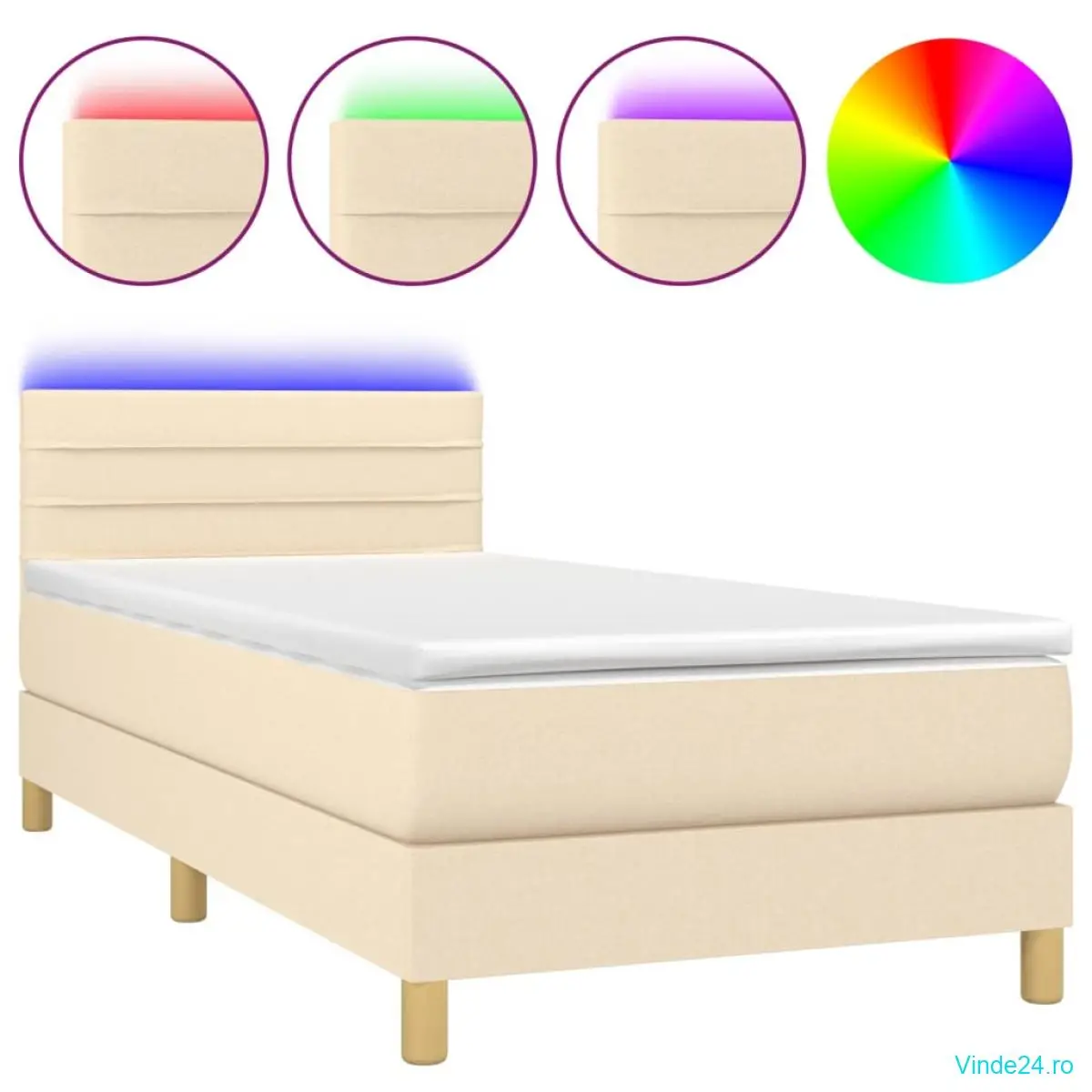 vidaXL Pat cu arcuri, saltea și LED, crem, 90x190 cm, textil