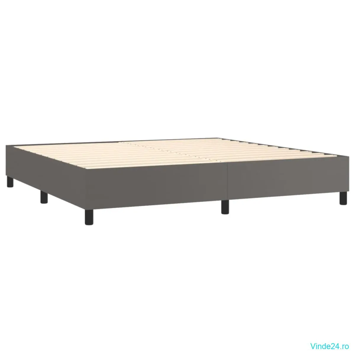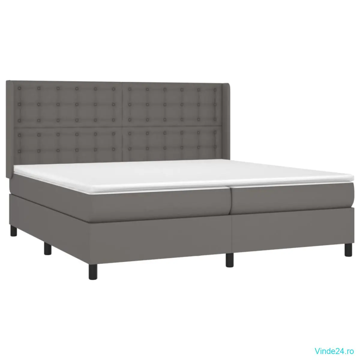 vidaXL Pat cu arcuri, saltea și LED, gri, 200x200 cm, piele ecologică