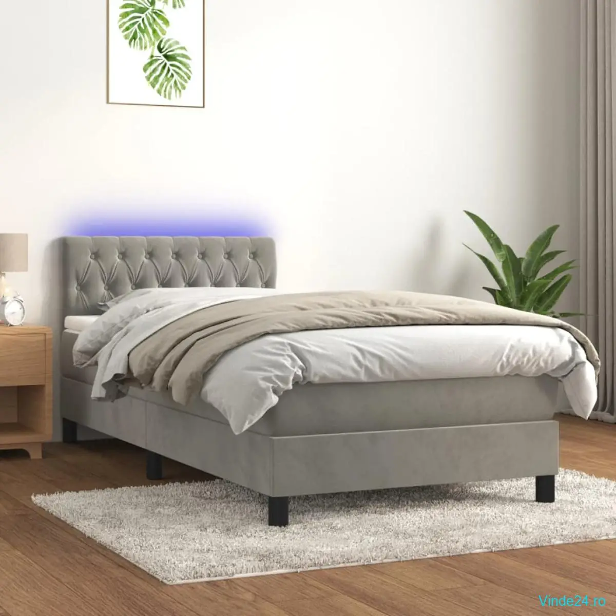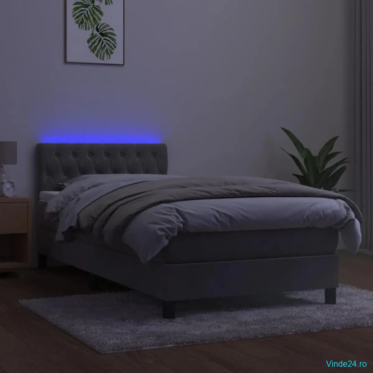 Folosiți acest pat cu arcuri, cu saltea și LED-uri, pentru a vă bucura de un somn odihnitor! Va fi punctul de atracție al dormitorului dvs.