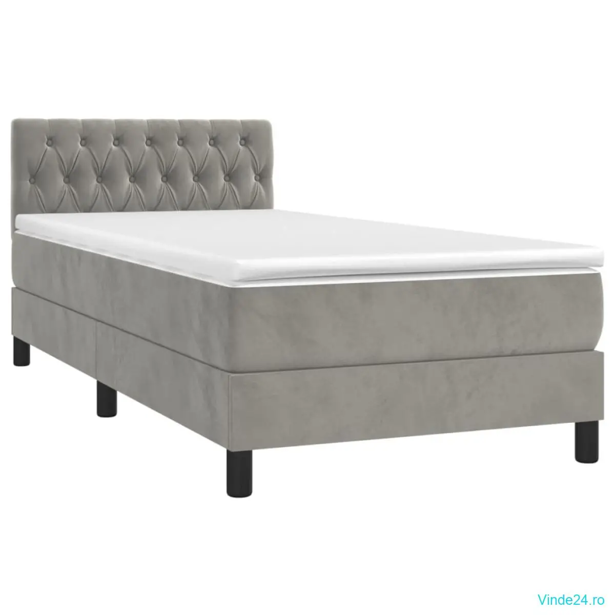 vidaXL Pat cu arcuri, saltea și LED, gri deschis, 100x200 cm, catifea