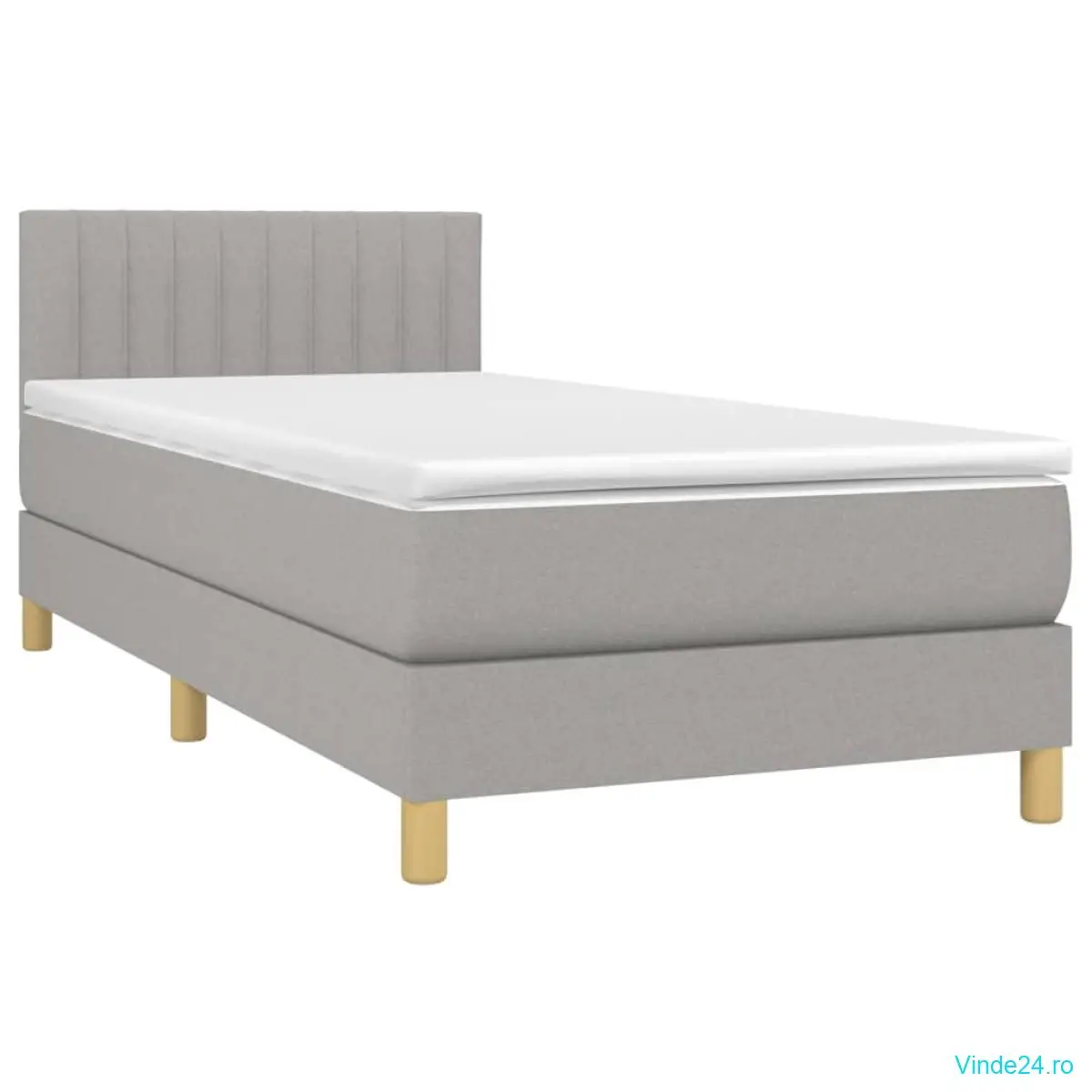 vidaXL Pat cu arcuri, saltea și LED, gri deschis, 100x200 cm, textil