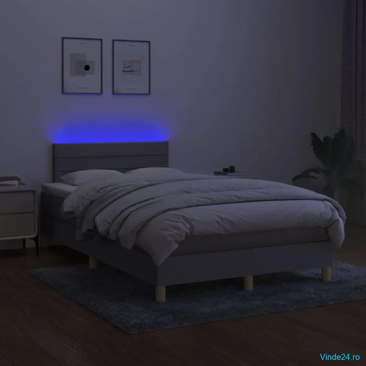 vidaXL Pat cu arcuri, saltea și LED, gri deschis, 120x200 cm, textil