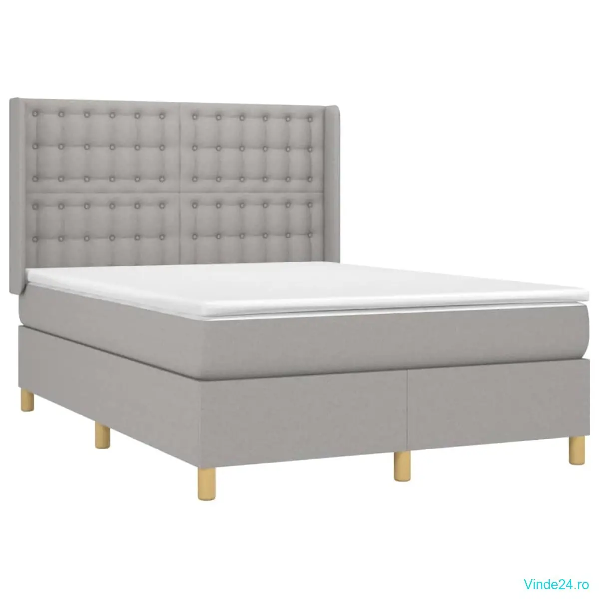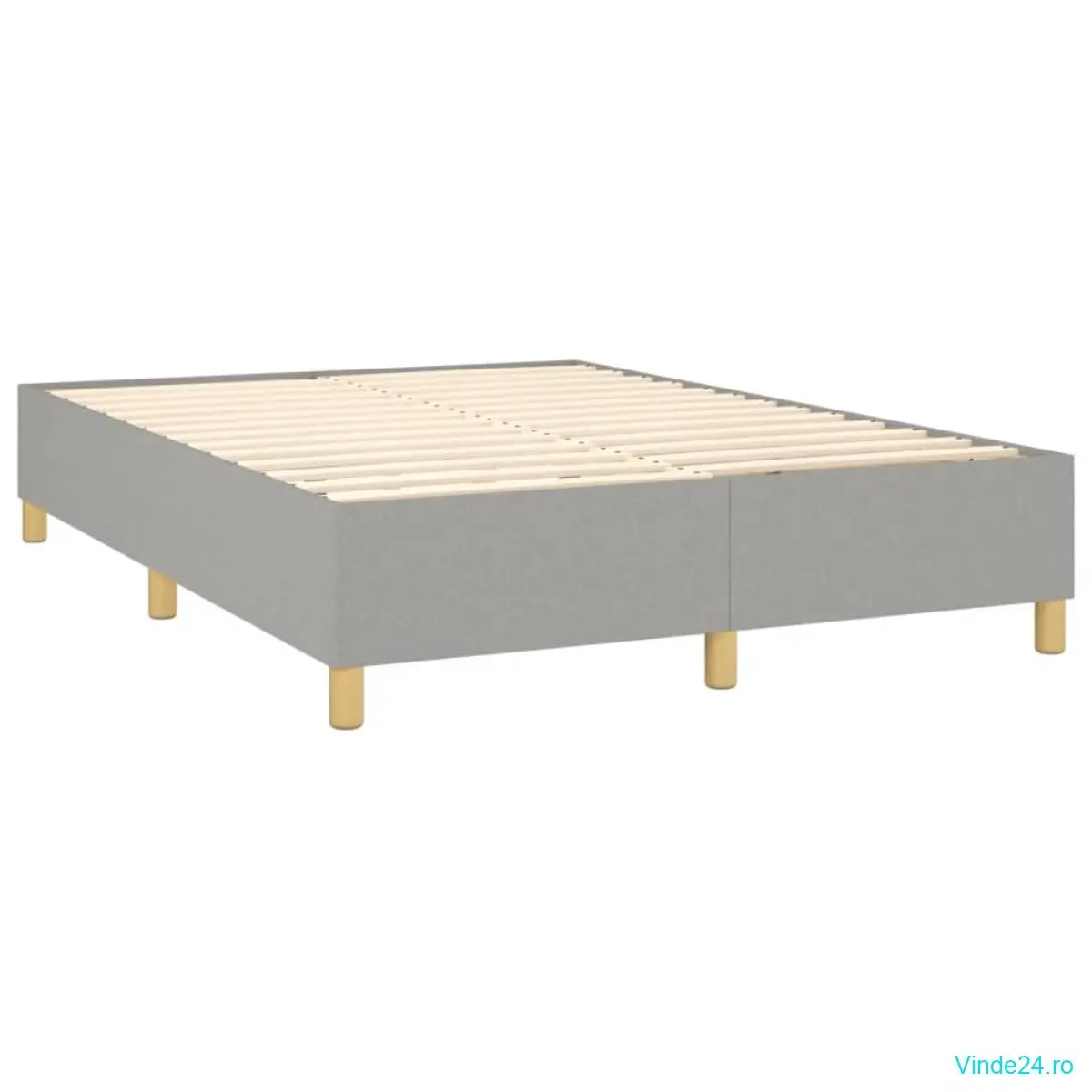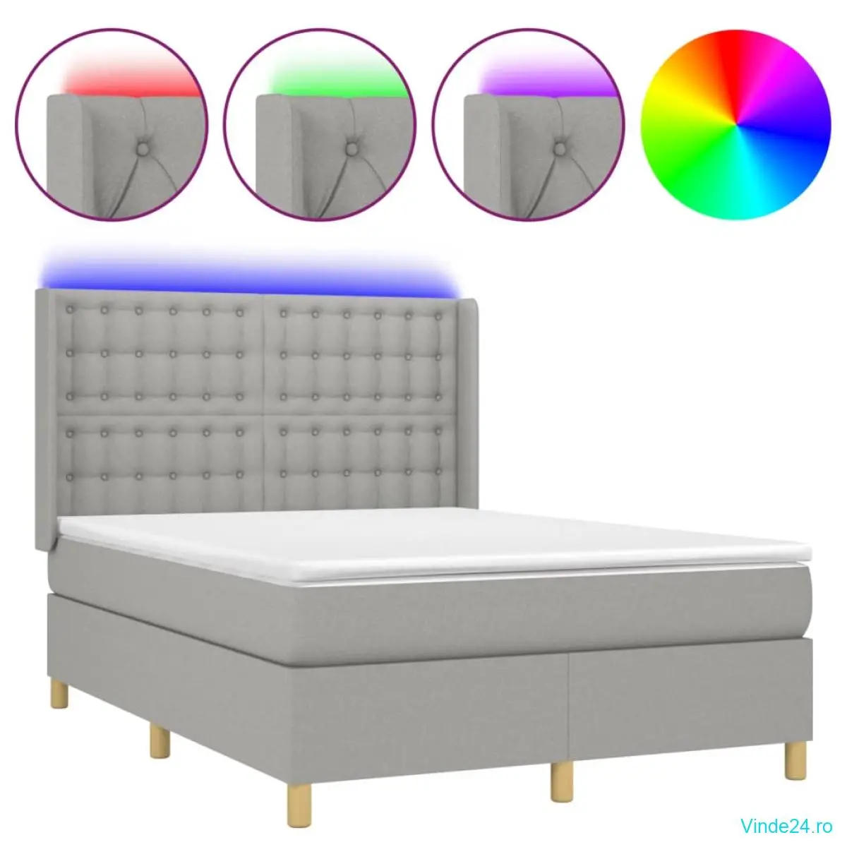 vidaXL Pat cu arcuri, saltea și LED, gri deschis, 140x190 cm, textil