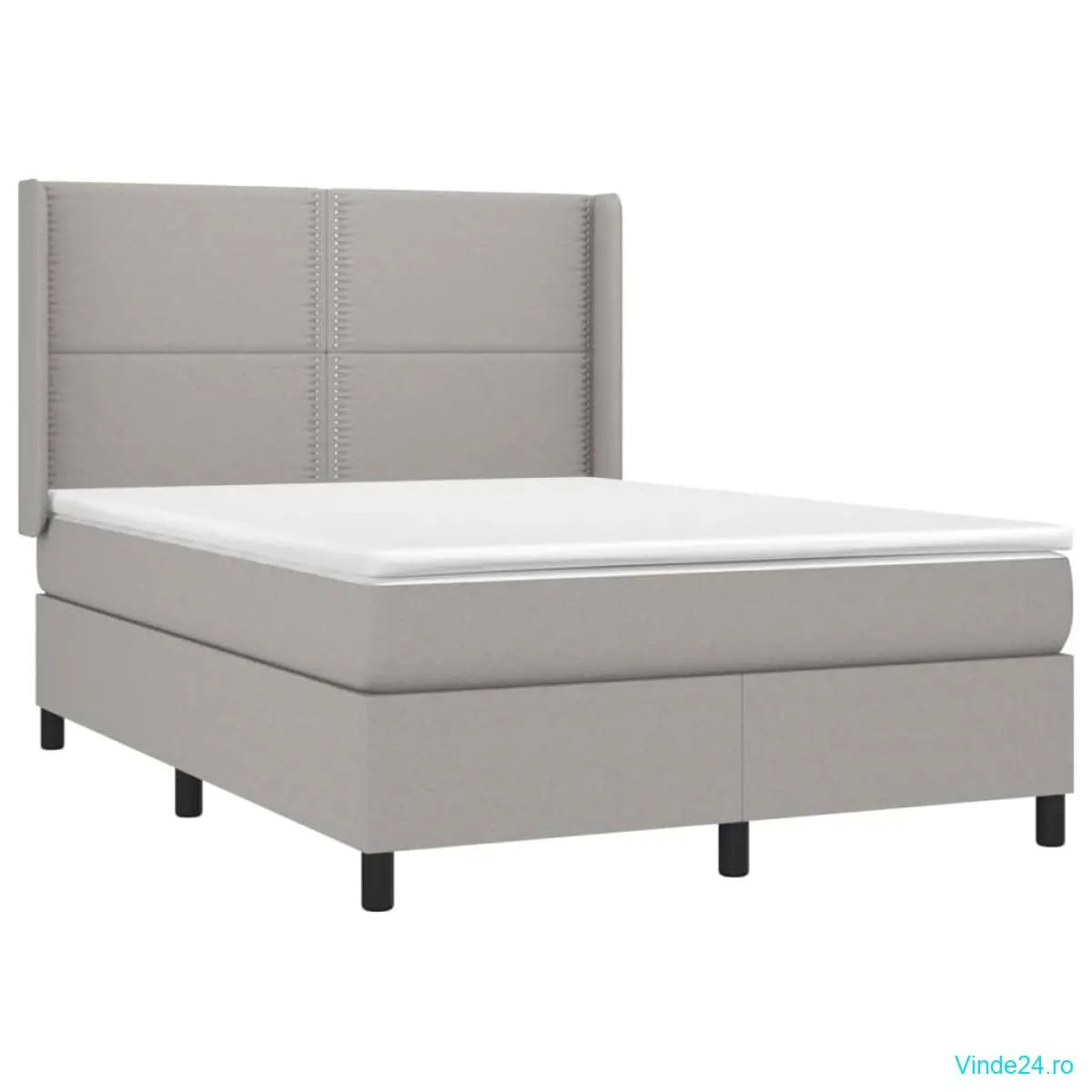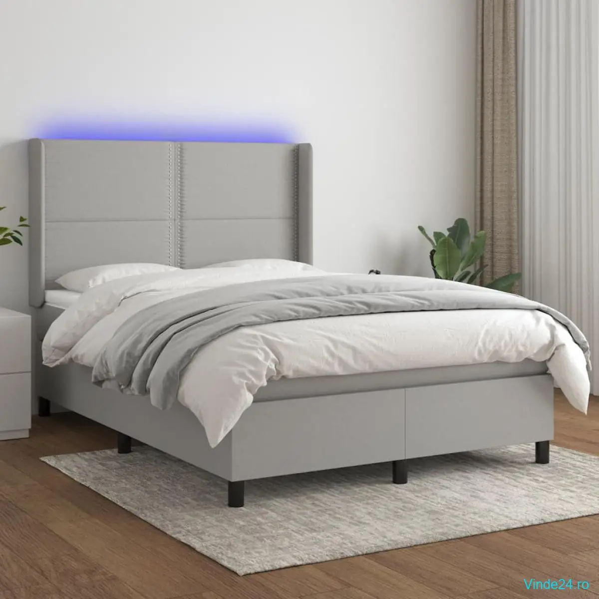 vidaXL Pat cu arcuri, saltea și LED, gri deschis, 140x200 cm, textil