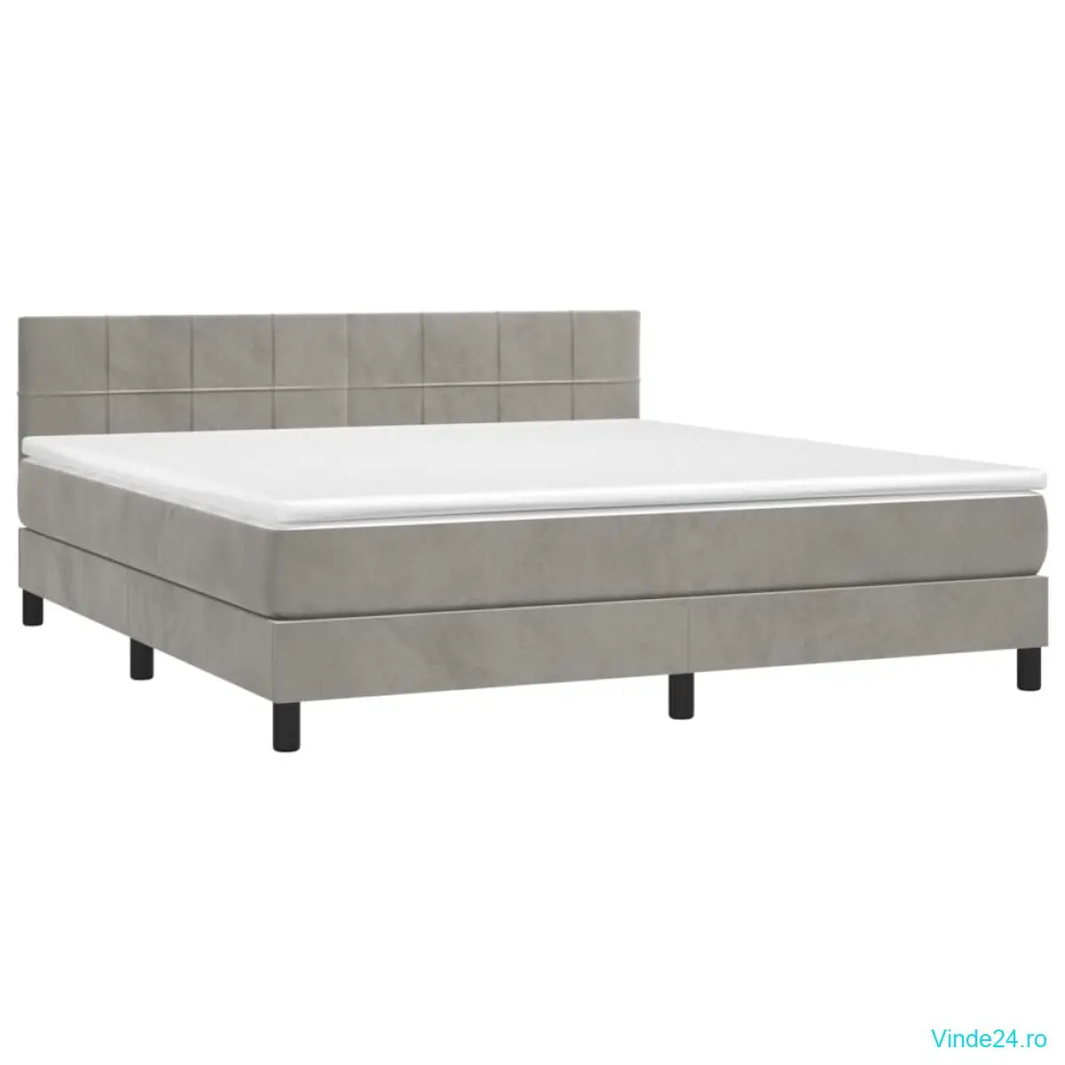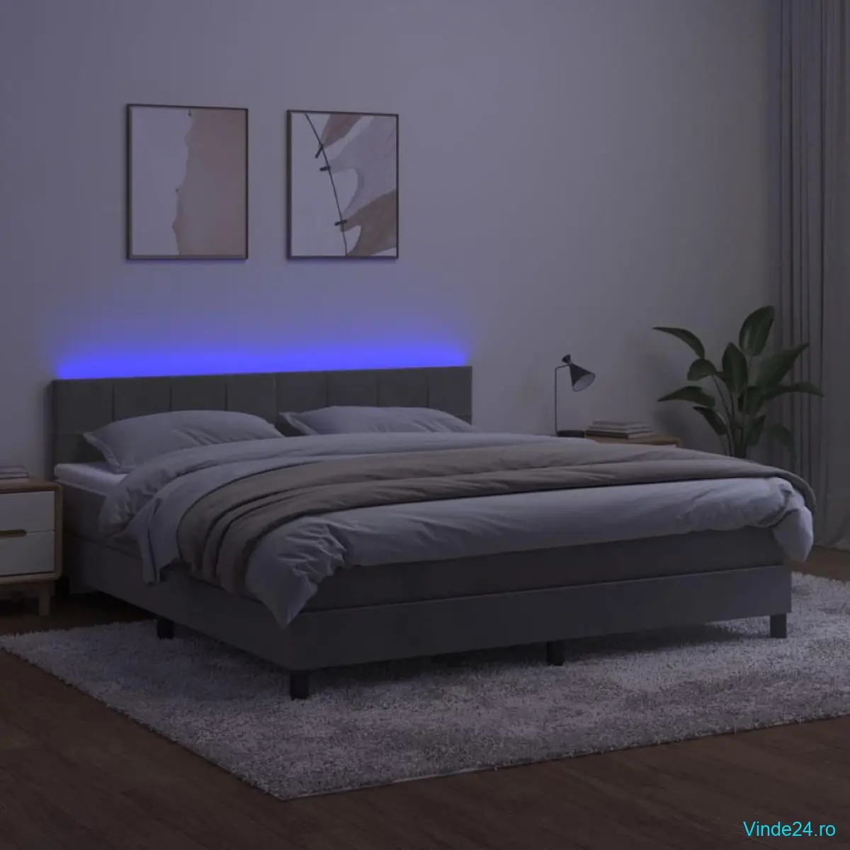 vidaXL Pat cu arcuri, saltea și LED, gri deschis, 180x200 cm, catifea