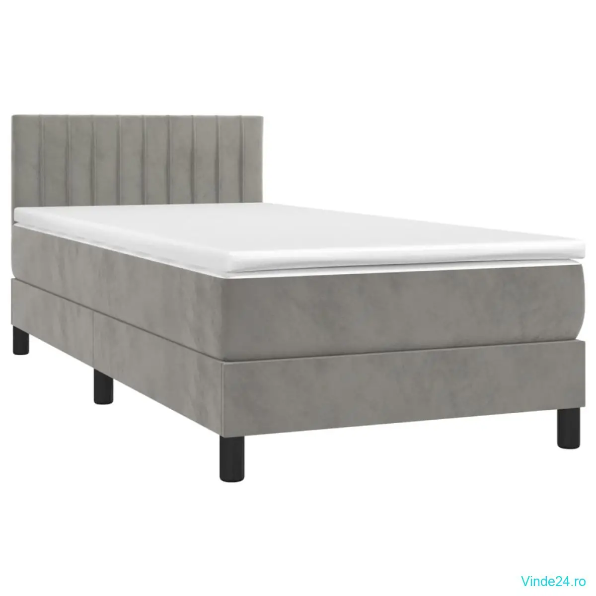 vidaXL Pat cu arcuri, saltea și LED, gri deschis, 90x190 cm, catifea