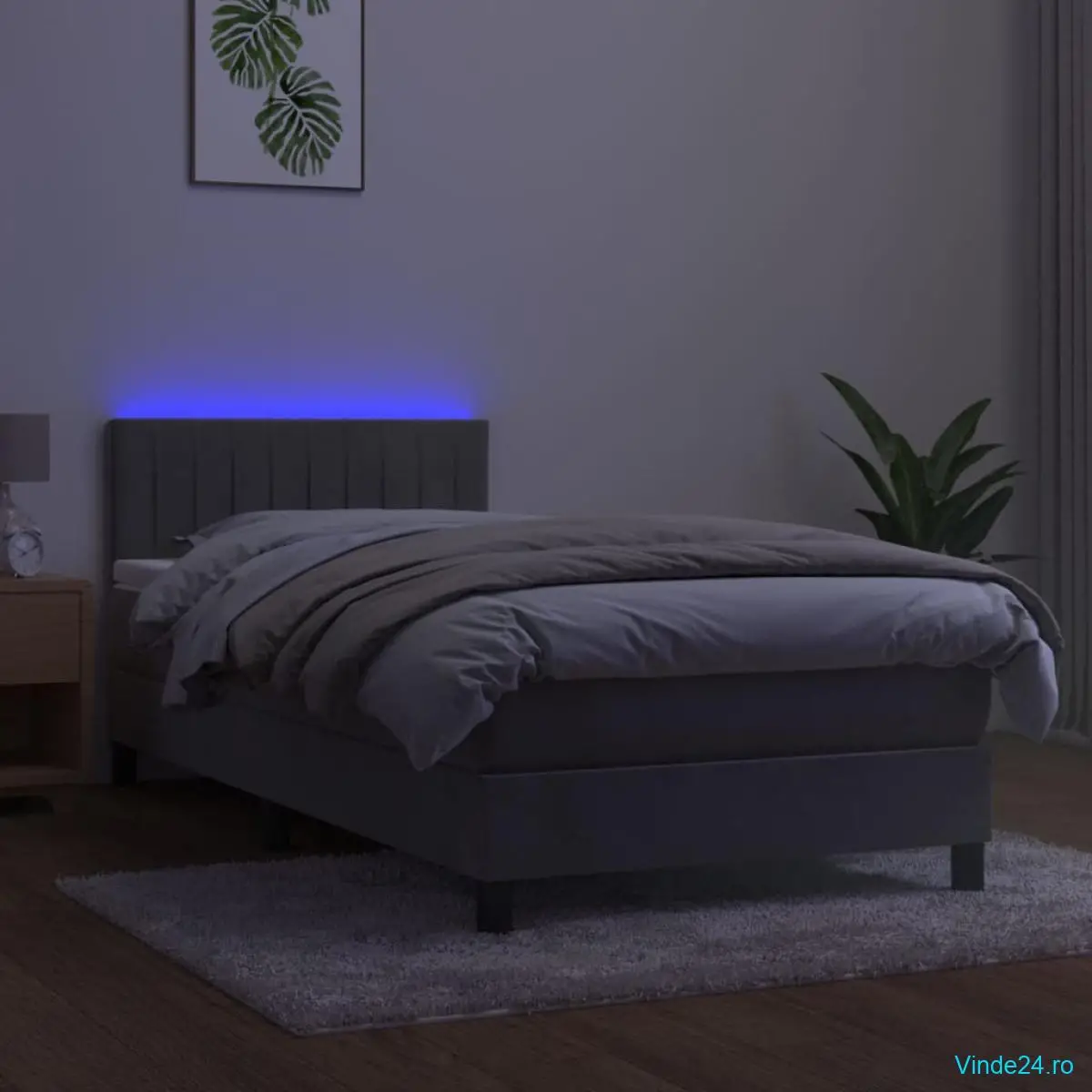 Folosiți acest pat cu arcuri, cu saltea și LED-uri, pentru a vă bucura de un somn odihnitor! Va fi punctul de atracție al dormitorului dvs.