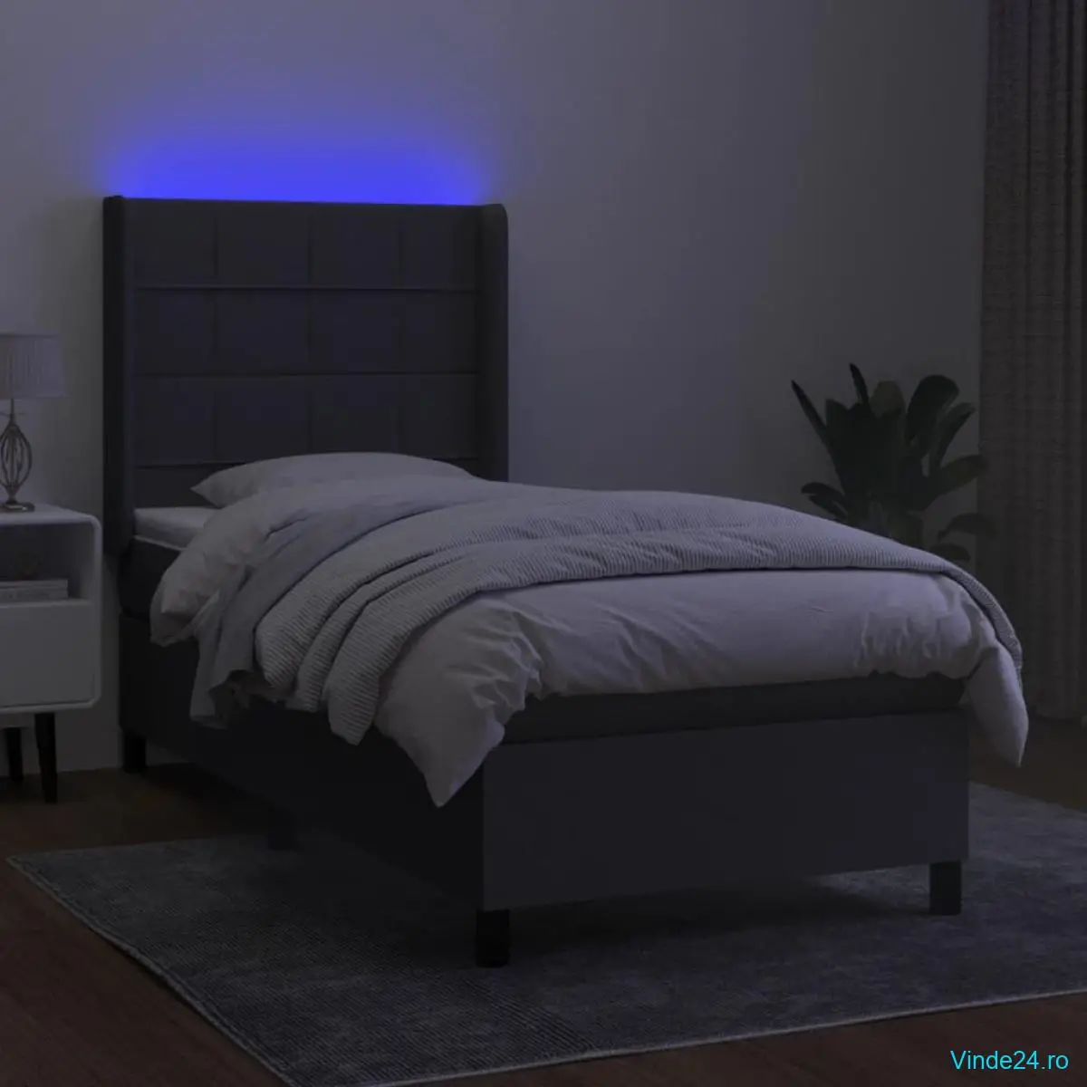 Folosiți acest pat cu arcuri, cu saltea și LED-uri, pentru a vă bucura de un somn odihnitor! Va fi punctul de atracție al dormitorului dvs.