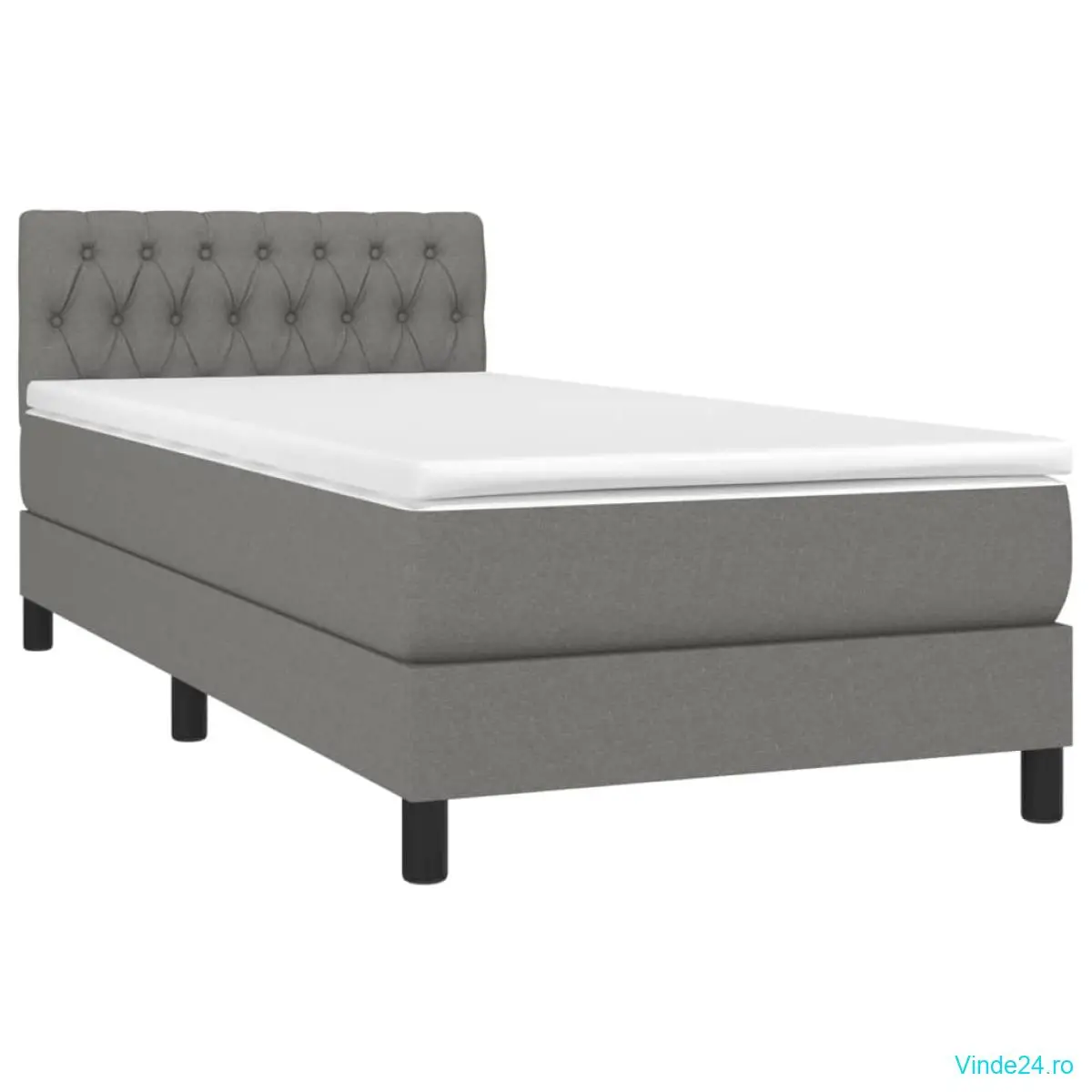 vidaXL Pat cu arcuri, saltea și LED, gri închis, 100x200 cm, textil