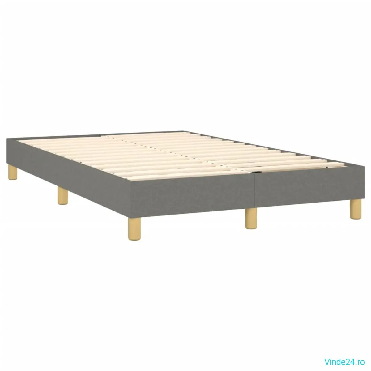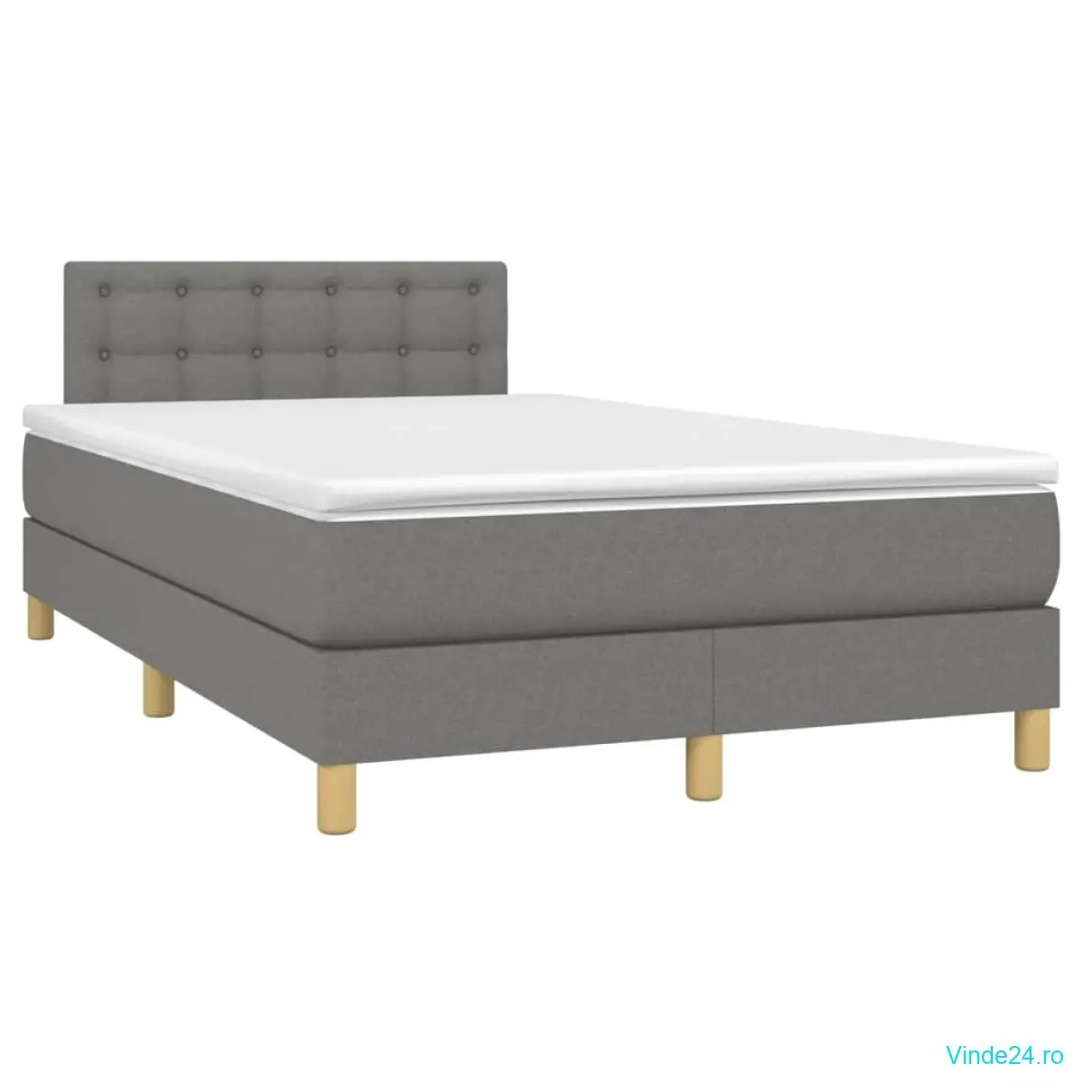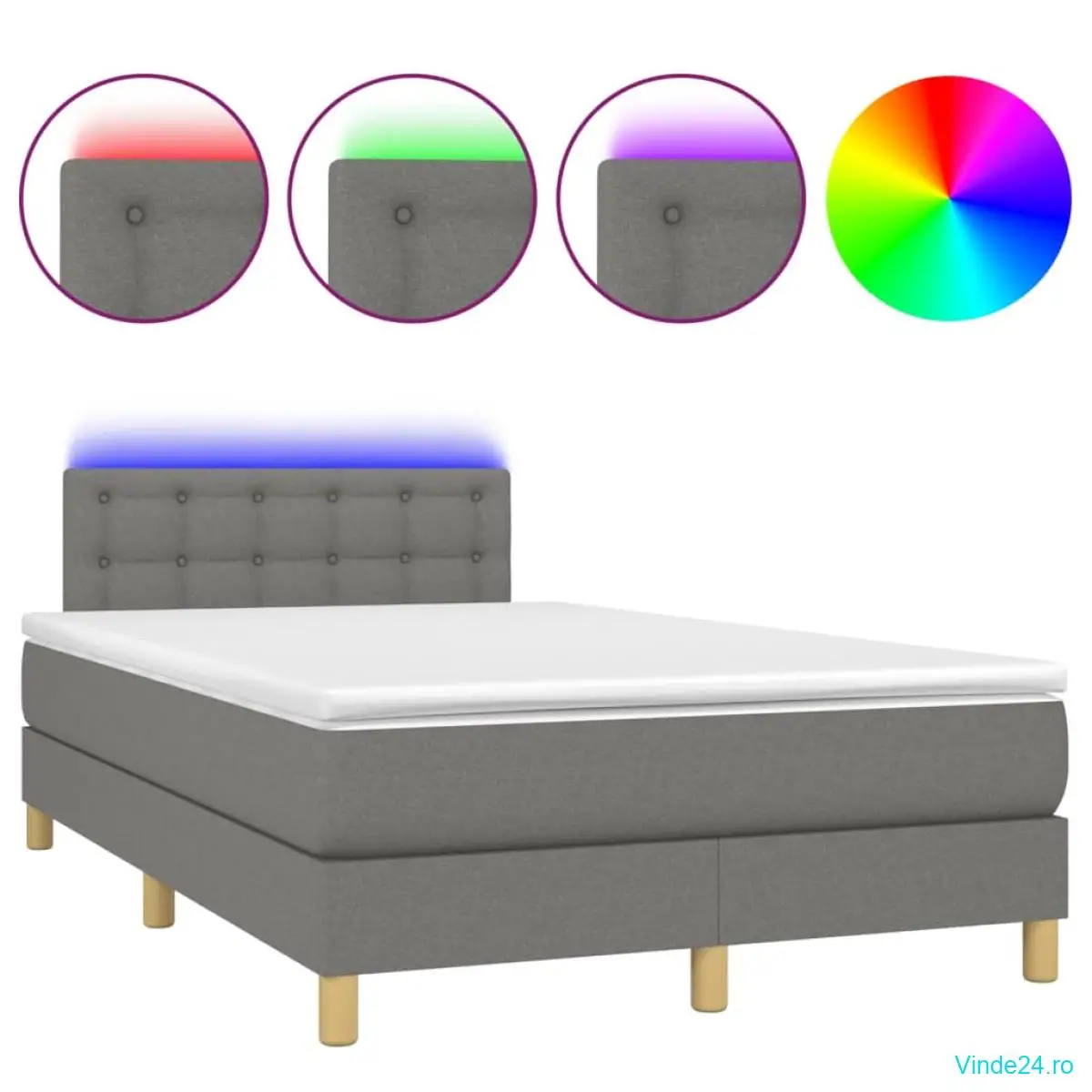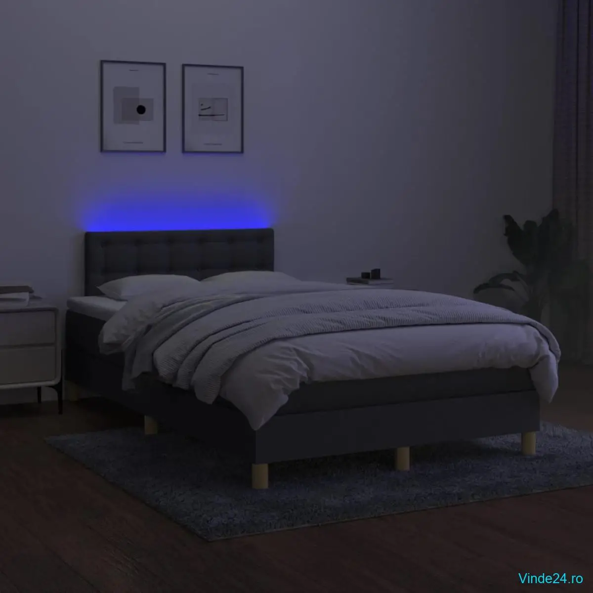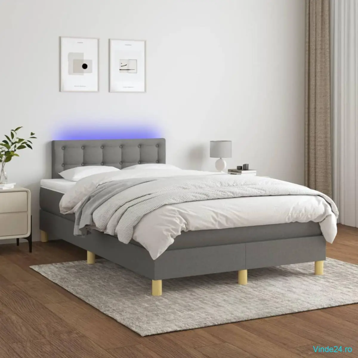 vidaXL Pat cu arcuri, saltea și LED, gri închis, 120x200 cm, textil
