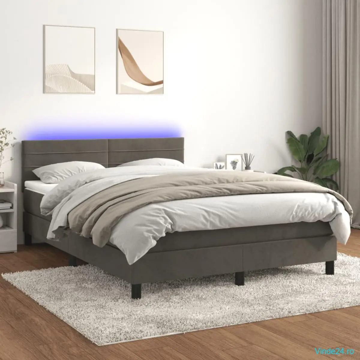 Folosiți acest pat cu arcuri, cu saltea și LED-uri, pentru a vă bucura de un somn odihnitor! Va fi punctul de atracție al dormitorului dvs.