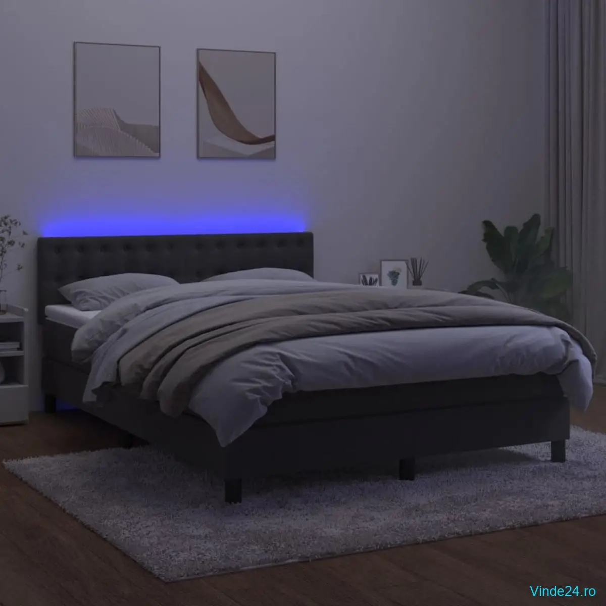 Folosiți acest pat cu arcuri, cu saltea și LED-uri, pentru a vă bucura de un somn odihnitor! Va fi punctul de atracție al dormitorului dvs.