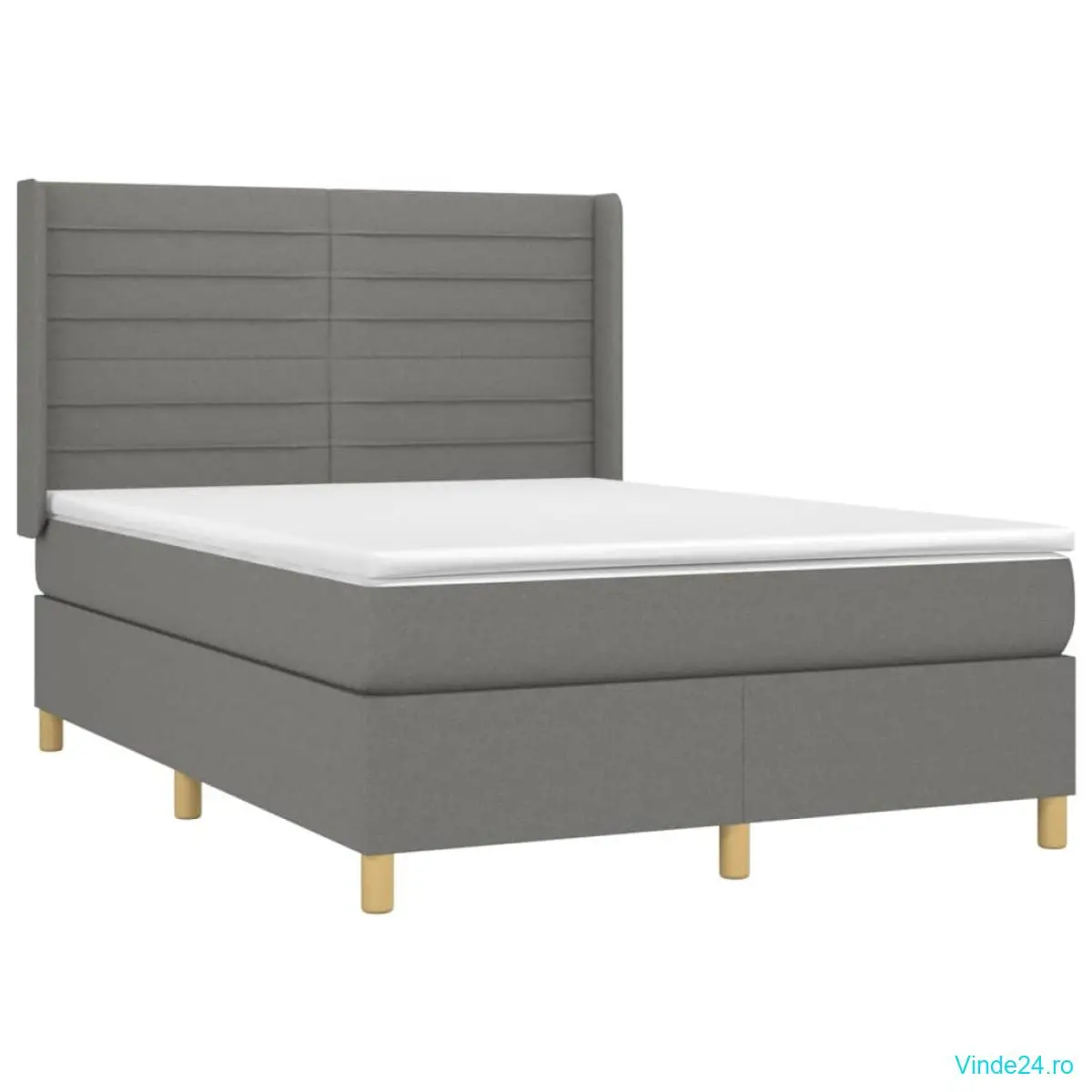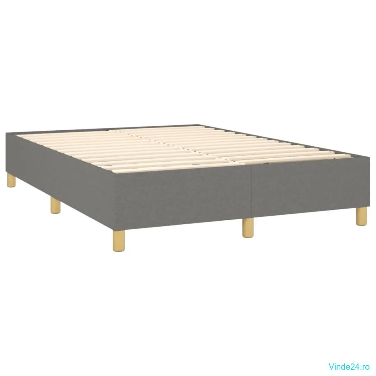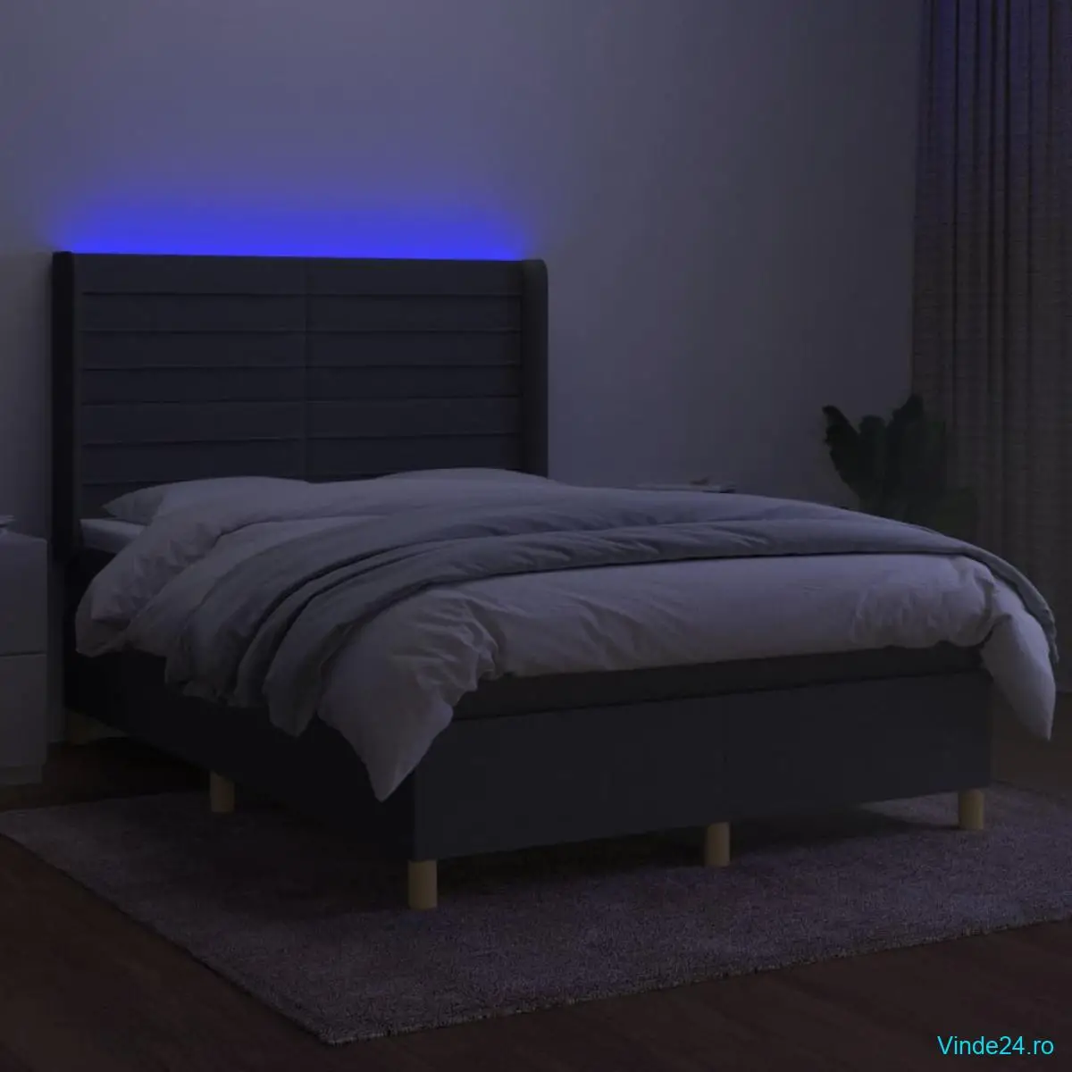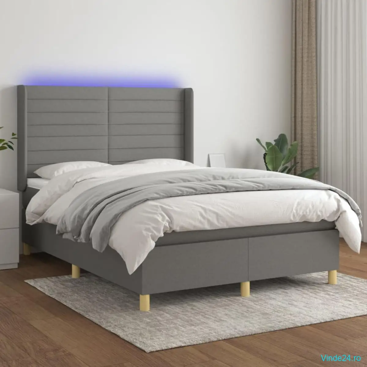 vidaXL Pat cu arcuri, saltea și LED, gri închis, 140x190 cm, textil