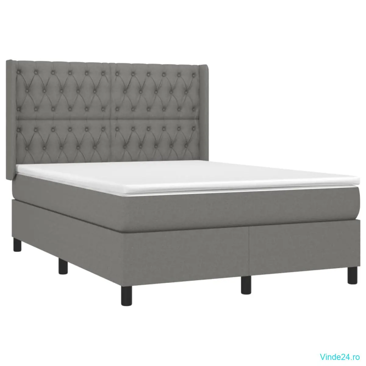 vidaXL Pat cu arcuri, saltea și LED, gri închis, 140x190 cm, textil