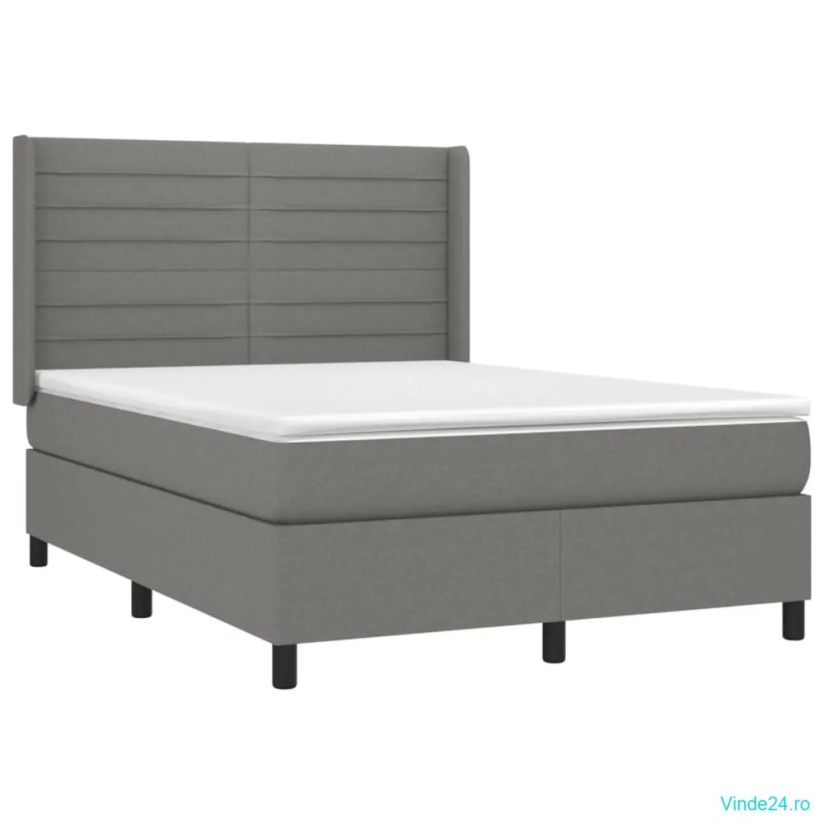 vidaXL Pat cu arcuri, saltea și LED, gri închis, 140x200 cm, textil