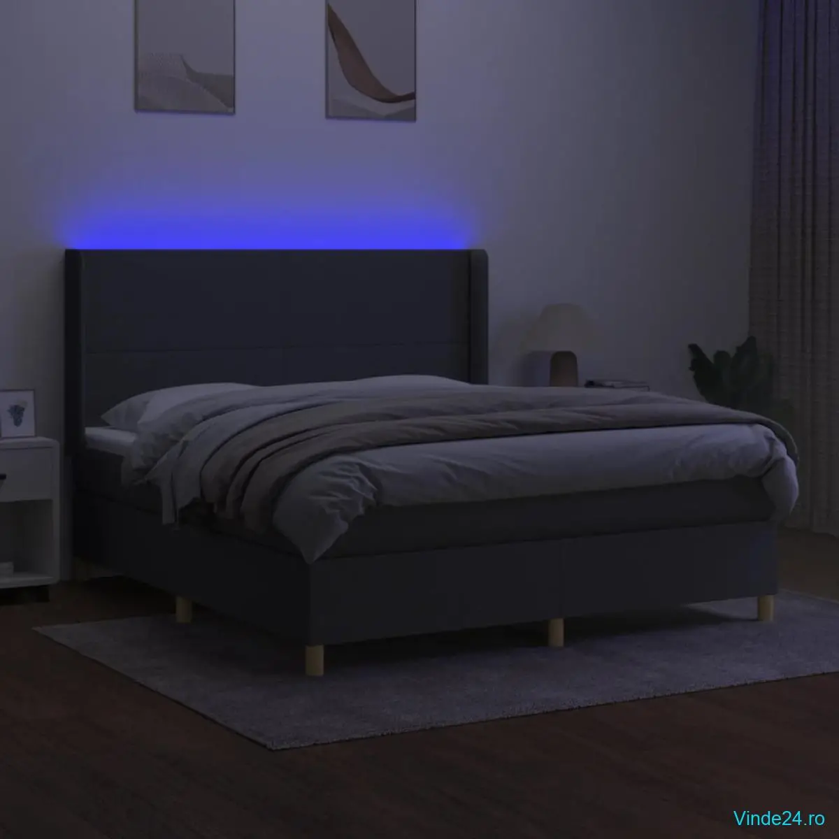 Folosiți acest pat cu arcuri, cu saltea și LED-uri, pentru a vă bucura de un somn odihnitor! Va fi punctul de atracție al dormitorului dvs.