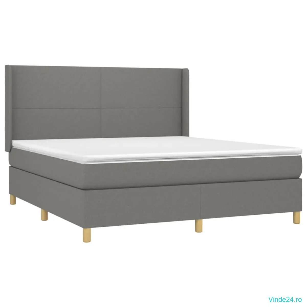 vidaXL Pat cu arcuri, saltea și LED, gri închis, 160x200 cm, textil