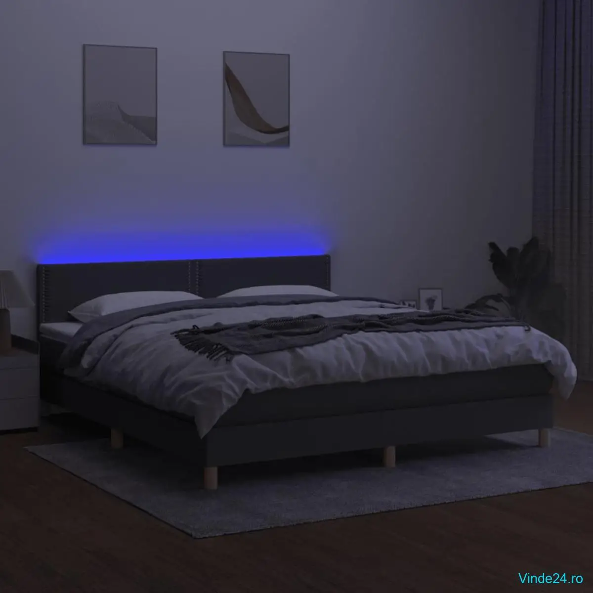 vidaXL Pat cu arcuri, saltea și LED, gri închis, 160x200 cm, textil