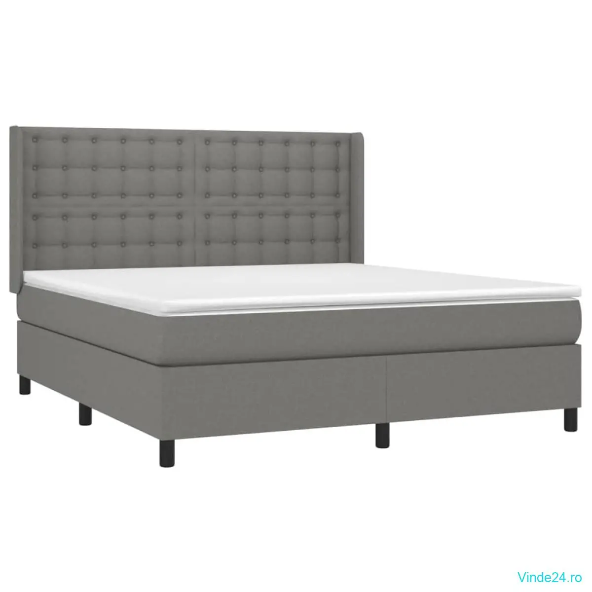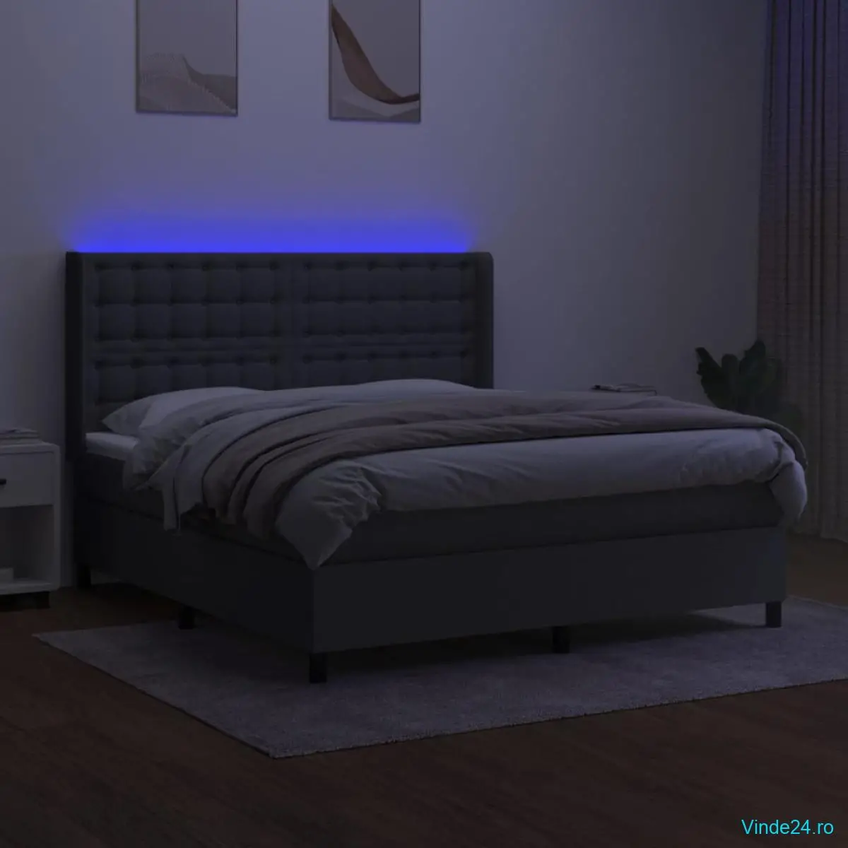 vidaXL Pat cu arcuri, saltea și LED, gri închis, 180x200 cm, textil