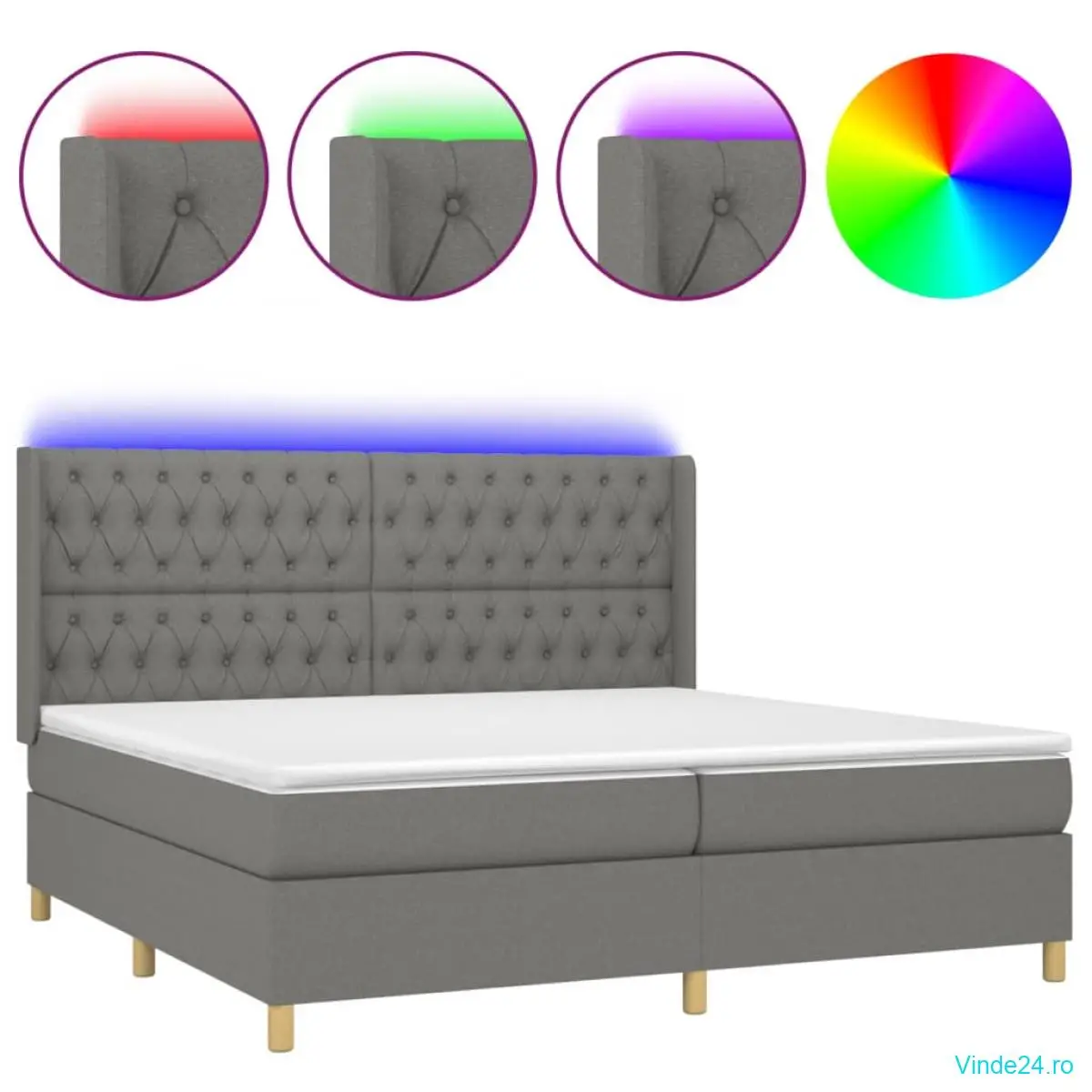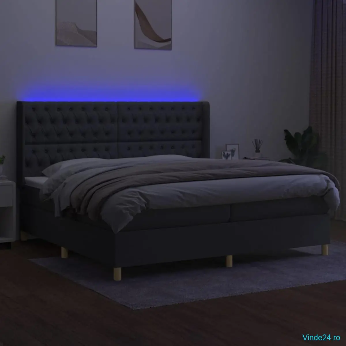 Folosiți acest pat cu arcuri, cu saltea și LED-uri, pentru a vă bucura de un somn odihnitor! Va fi punctul de atracție al dormitorului dvs.
